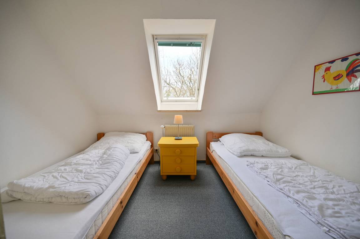 Zweites separates kleines Schlafzimmer mit zwei Einzelbetten und Kleiderschrank.