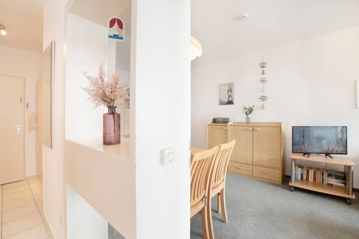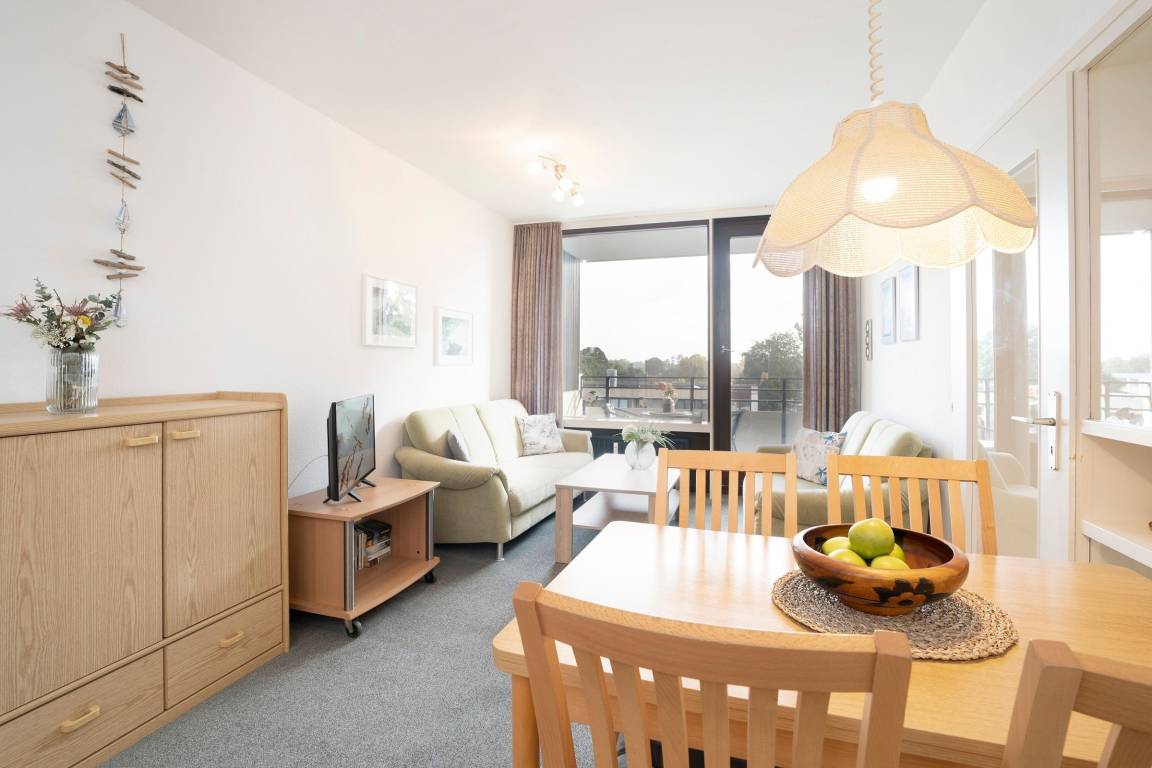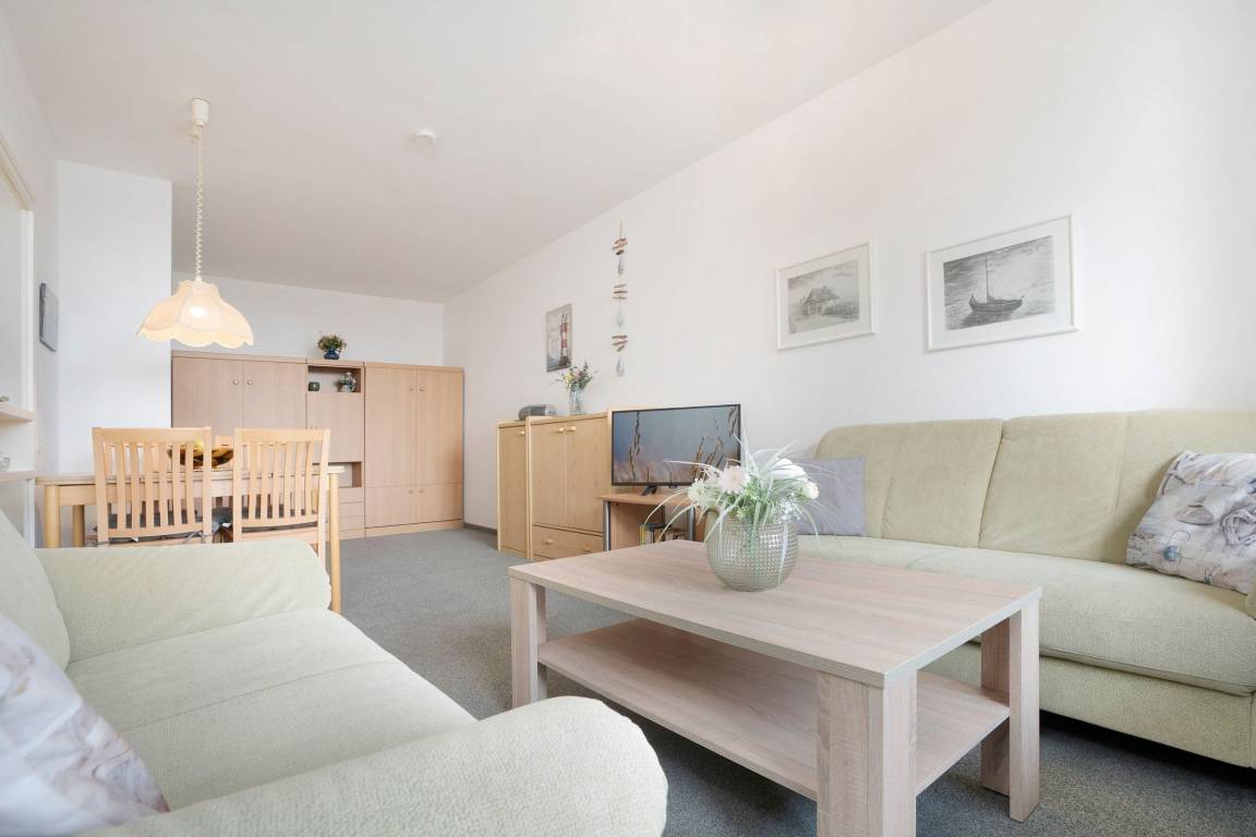 In bester Lage von Kellenhusen: strandnahe 2-Zimmer-Ferienwohnung im 5. Stock mit Balkon, Fahrstuhl und einer Wohnfläche von ca. 42 m² für bis zu 4 Personen.