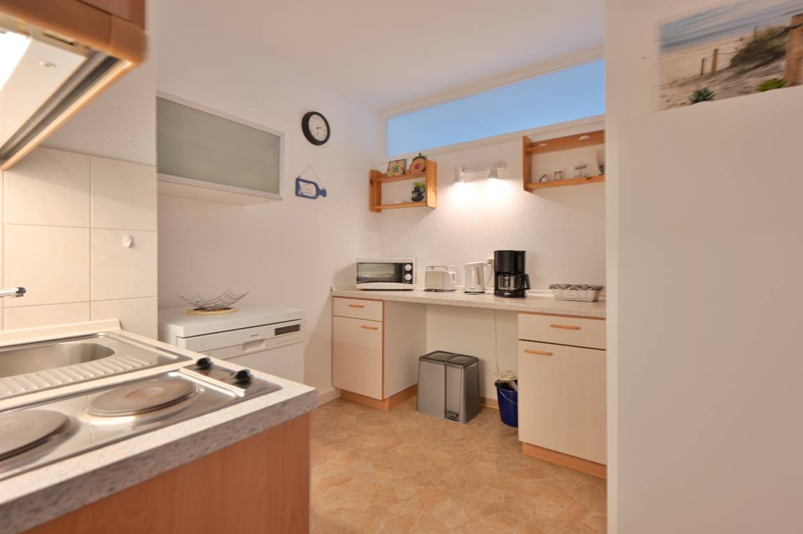 „Wir sind komplett zufrieden mit dem gesamten Buchungsablauf und dem Service vor Ort, seitens der Vermittlung Knauff, hierfür 10 Sterne! Alle Mitarbeiter sind toll! Die Wohnung hat eine gute Lage, nur ca. 50m zum Strand und zur Promenade. Die Ausstattung der Wohnung ist sehr einfach und etwas veraltet, jedoch alles sehr sauber und gepflegt. Das Kinderzimmer ist renoviert und sehr schön. Im Wohnzimmer ist ein alter Teppichboden, der wirklich mal erneuert werden müsste. Die Küche ist auch schon sehr alt, aber sehr gepflegt und es funktioniert alles. Gefehlt hat allerdings ein kleines Schneidebrett, ein kleines Obst-Gemüsemesser und ein Spülschwamm. Wir (2 Pers.) haben uns sehr wohl gefühlt und empfehlen es guten Gewissens weiter, an Leute, die mit einer einfachen und sauberen Ausstattung zufrieden sind.“