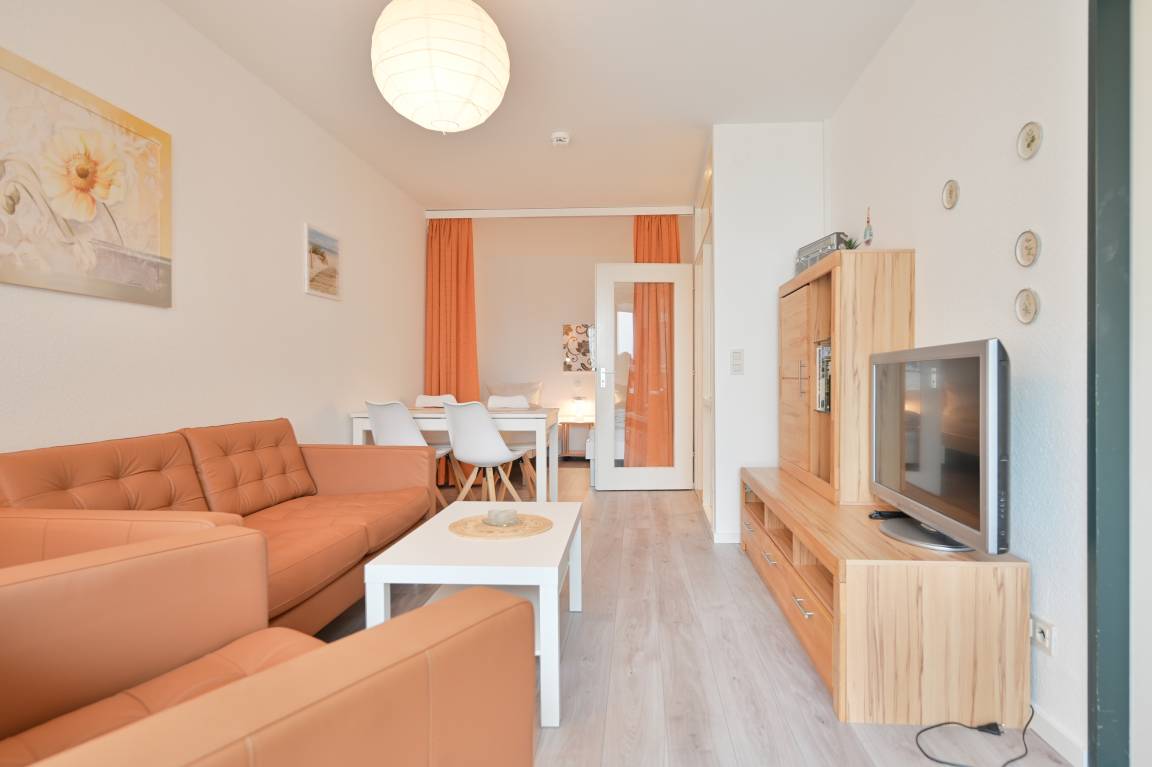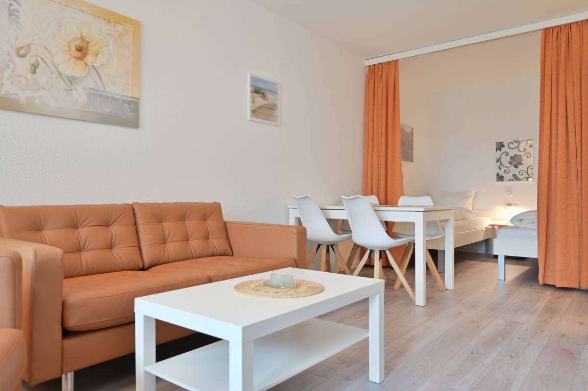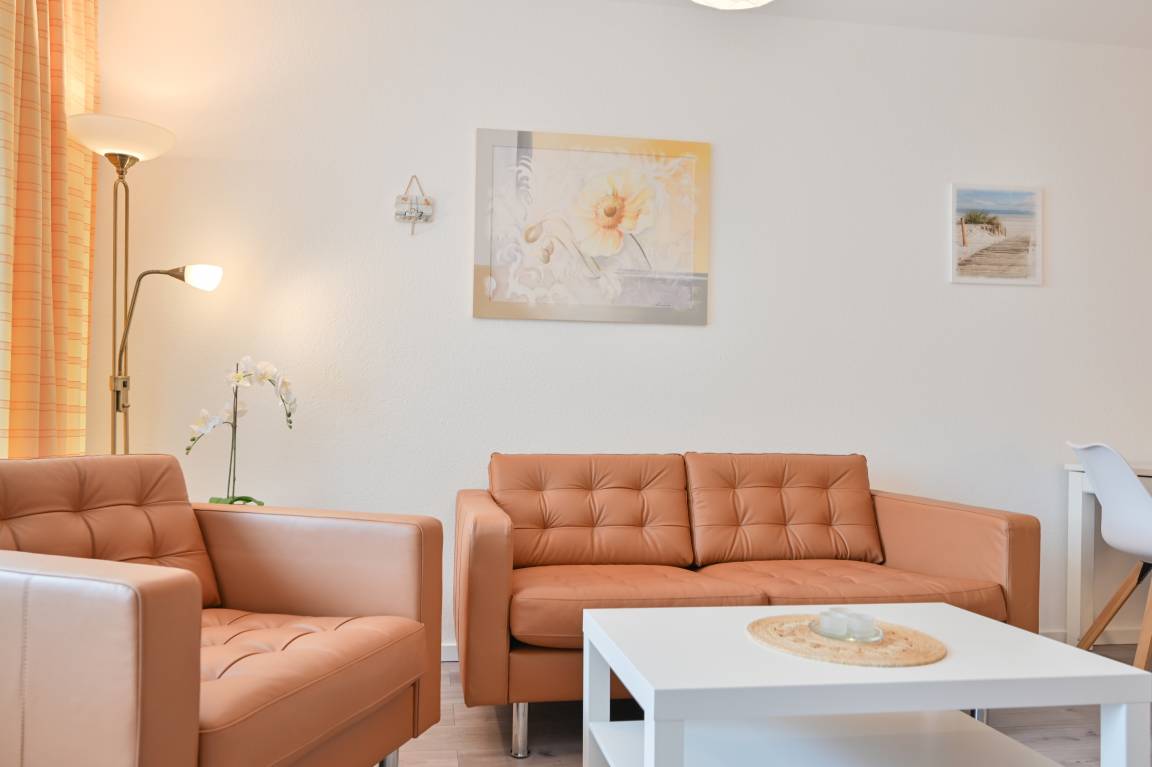 Im Wohnbereich erwartet Sie eine gemütliche Sofalandschaft mit einem bequemen 2-