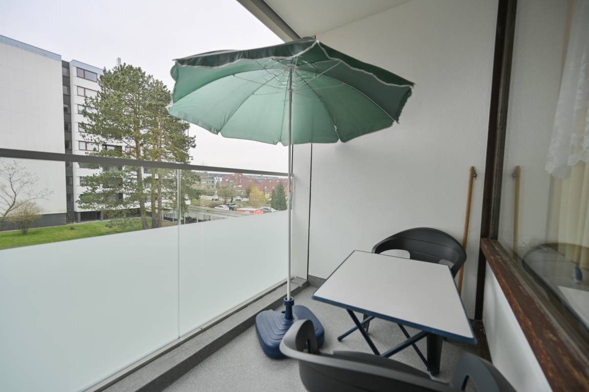 Ein besonderes Highlight ist der sonnige Balkon, den Sie direkt vom Wohnbereich aus