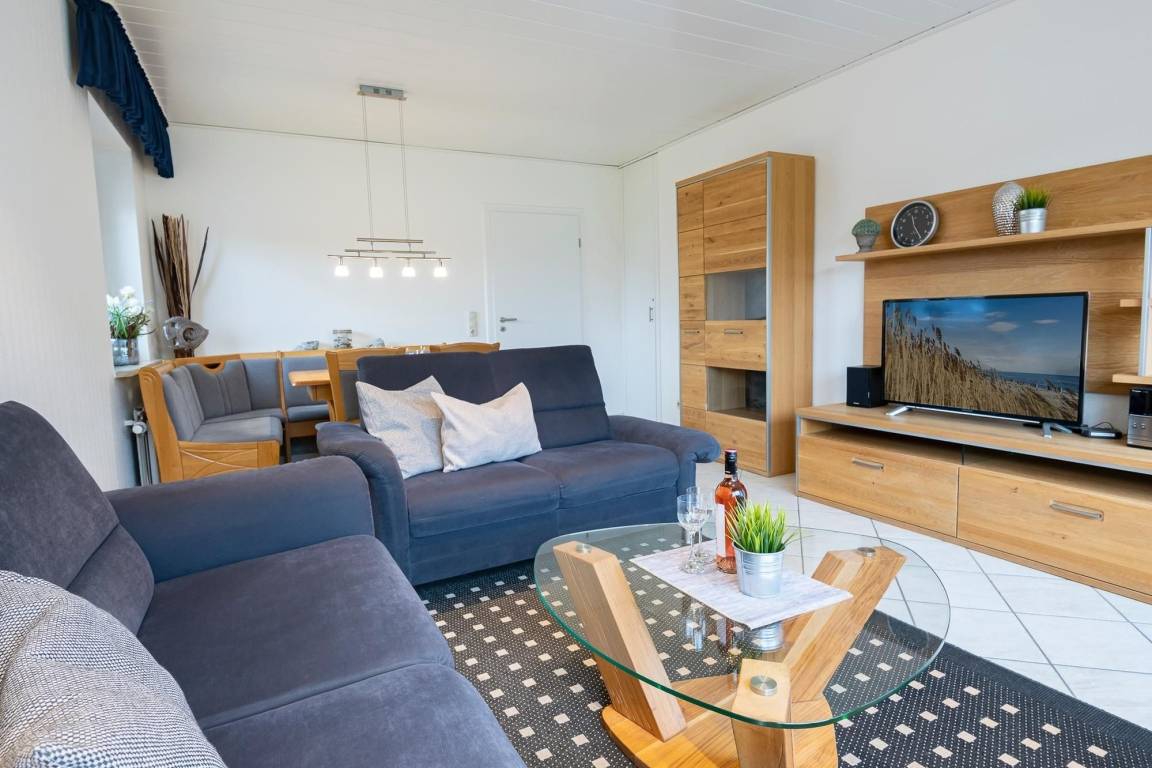 Lust auf Sonne und Meer? Hell und freundliche begrüßt Sie diese zauberhafte Ferienwohnung im Haus Deichhof, das sich nur rund 100 Meter vom Strand entfernt befindet. In der 2. Reihe, direkt hinterm Deich. Kommen Sie rein und entspannen Sie sich auf den kuscheligen Sofas – wie wäre es hier abends mit einem Glas Wein und guten Gesprächen? Von hier aus haben Sie auch Zutritt auf den großzügigen, möblierten Balkon. Genießen Sie hier das schöne Wetter und Ihre Auszeit vom Alltag. Sie haben es sich verdient. Auch im Wohnraum finden Sie eine gemütliche Sitz-Ecke. Hier können Sie Ihre Strandtage oder auch Ihre Ausflüge planen – oder natürlich auch nett zusammen essen. Die separate Küche mit Geschirrspüler ist gut ausgestattet und wird jeden Hobby-Koch zum Lächeln bringen. Zur Nachtruhe können Sie sich in die beiden separaten Schlafräume zurückziehen. In einem Zimmer steht ein bequemes Doppelbett (2x 90x200 cm) und in dem anderen stehen 2 Einzelbetten (je 90x200 cm). Wir wünschen süße Träume. Das Duschbad ist hell gefliest und verspricht einen guten Start in den Tag.
