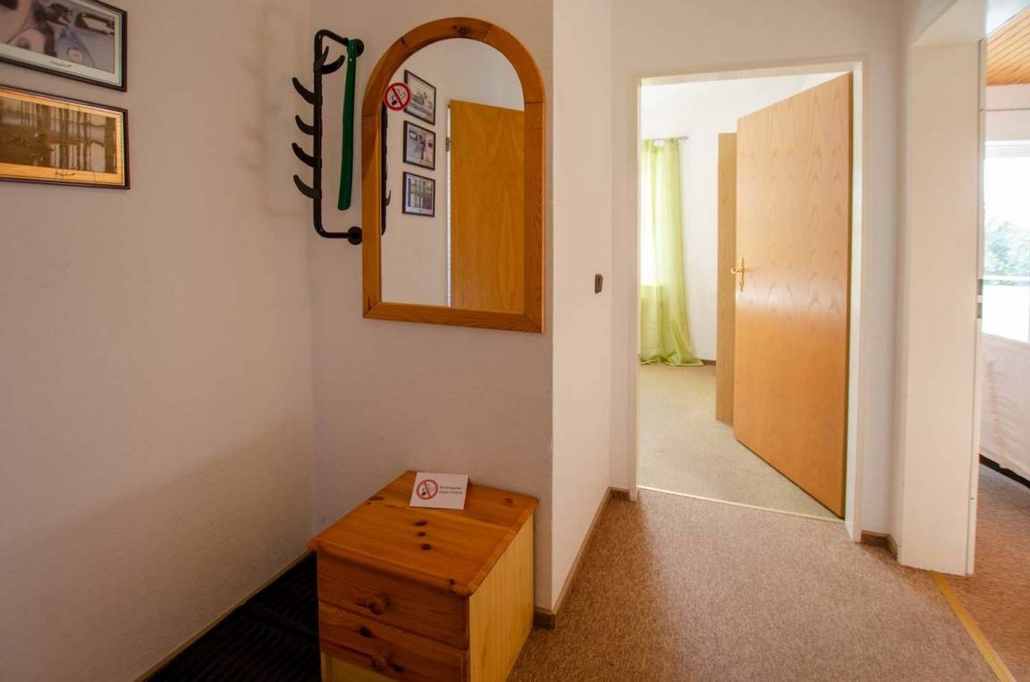 Im Flur befindet sich eine Garderobe und Spiegel.