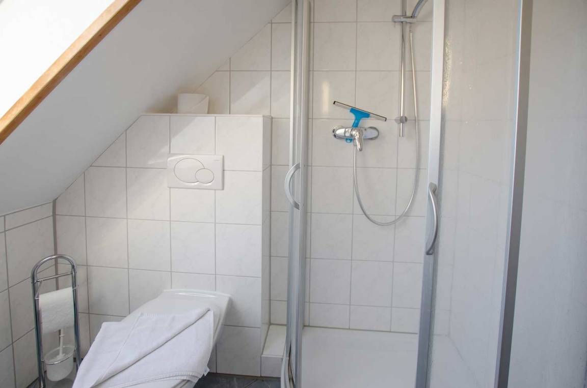 Das Badezimmer verfügt über Dusche und WC