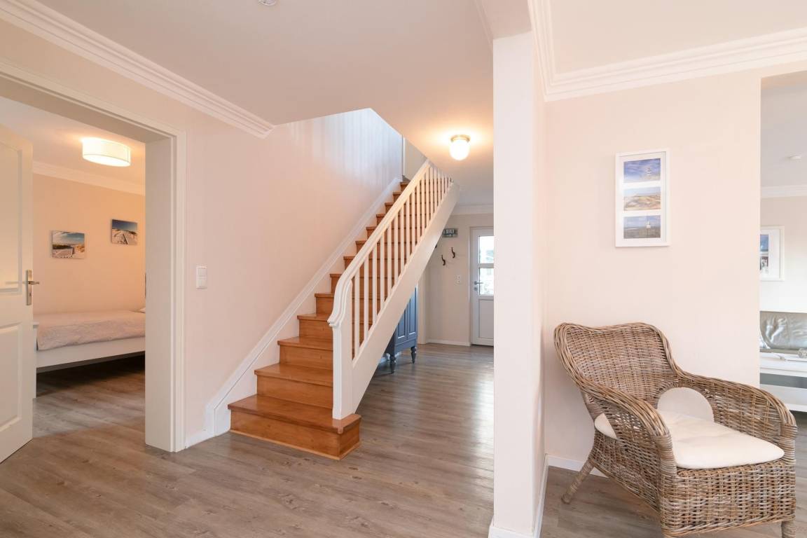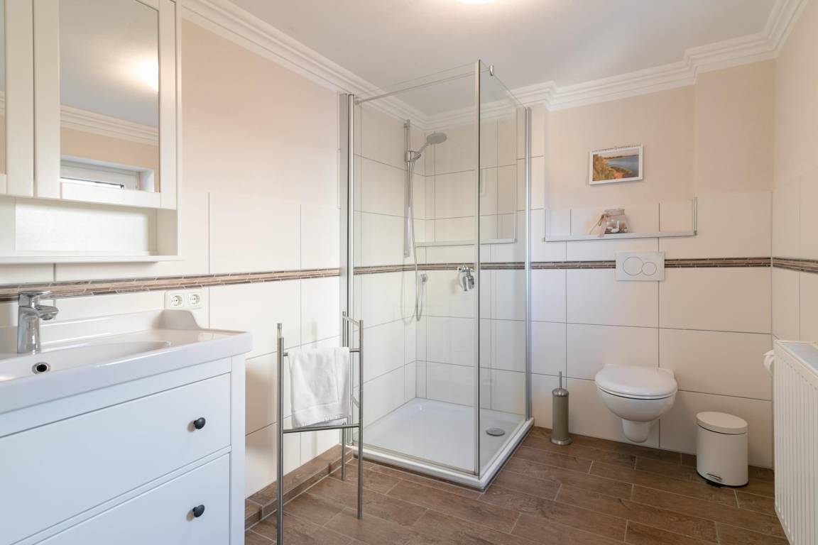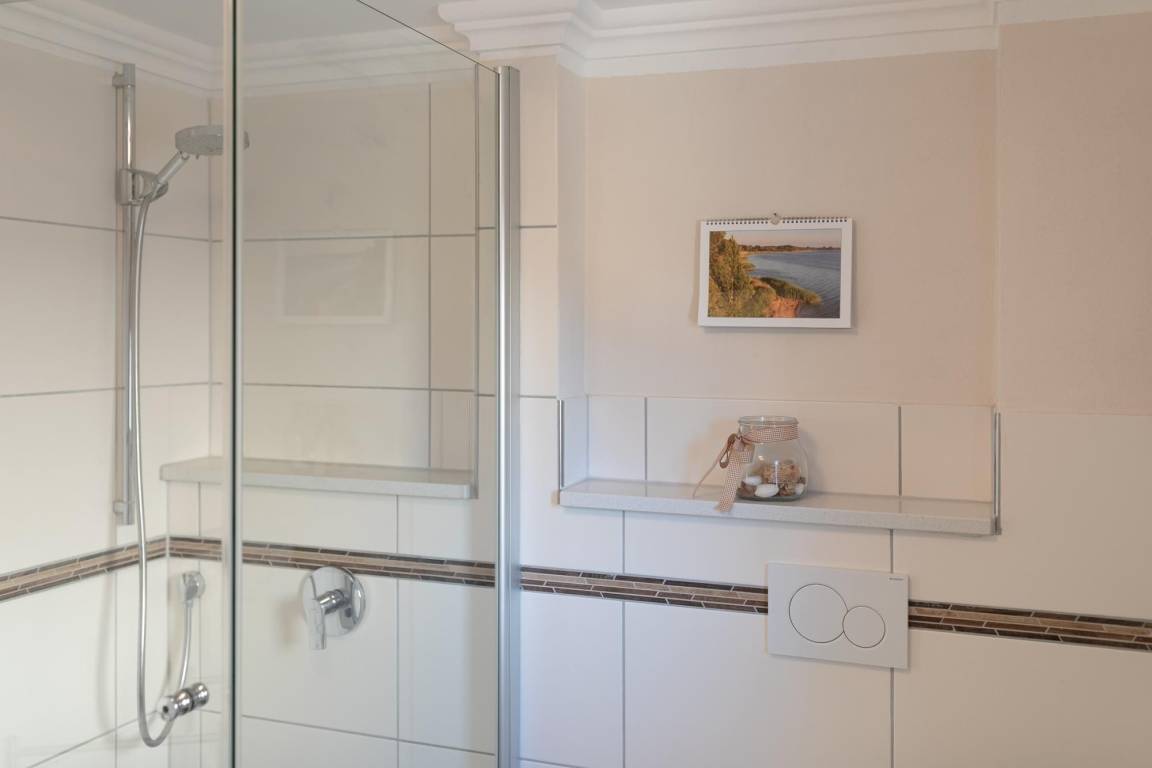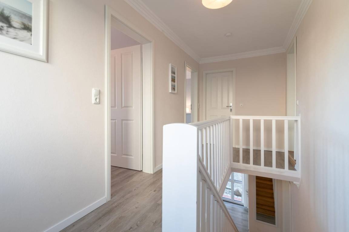Dieses helle, großzügige Ferienhaus bietet Ihnen im Erdgeschoss einen gemütlichen Wohnbereich mit Sofa-Ecke, Essplatz und offener Einbauküche. Die top ausgesuchte Ausstattung wird Sie sicher begeistern. Ein TV-Gerät sowie ein DVD-Player sorgen für Unterhaltung. Wenn die Sonne lacht, lockt die sonnige Terrasse. Hier können Sie wunderbar Ihre Auszeit und die gute Ostseeluft genießen. Im Erdgeschoss befinden sich ein Schlafzimmer mit Einzelbett (90x200 cm) sowie ein großes Duschbad mit WC (behindertengerecht). Das Obergeschoss ist mit 2 Schlafzimmern mit jeweils einem Doppelbett (je 2x 90x200 cm) ausgestattet und das 4. Schlafzimmer mit einem Einzelbett (90x200 cm). Auch hier gibt es ein großzügiges Duschbad.