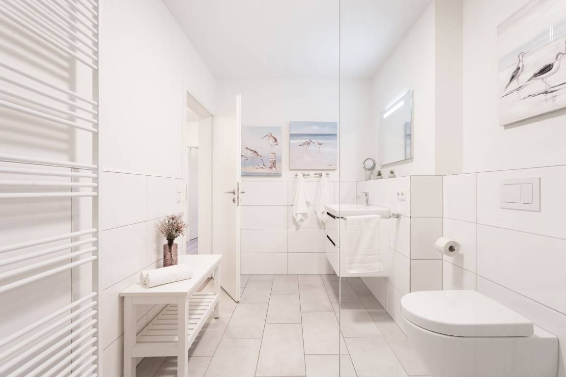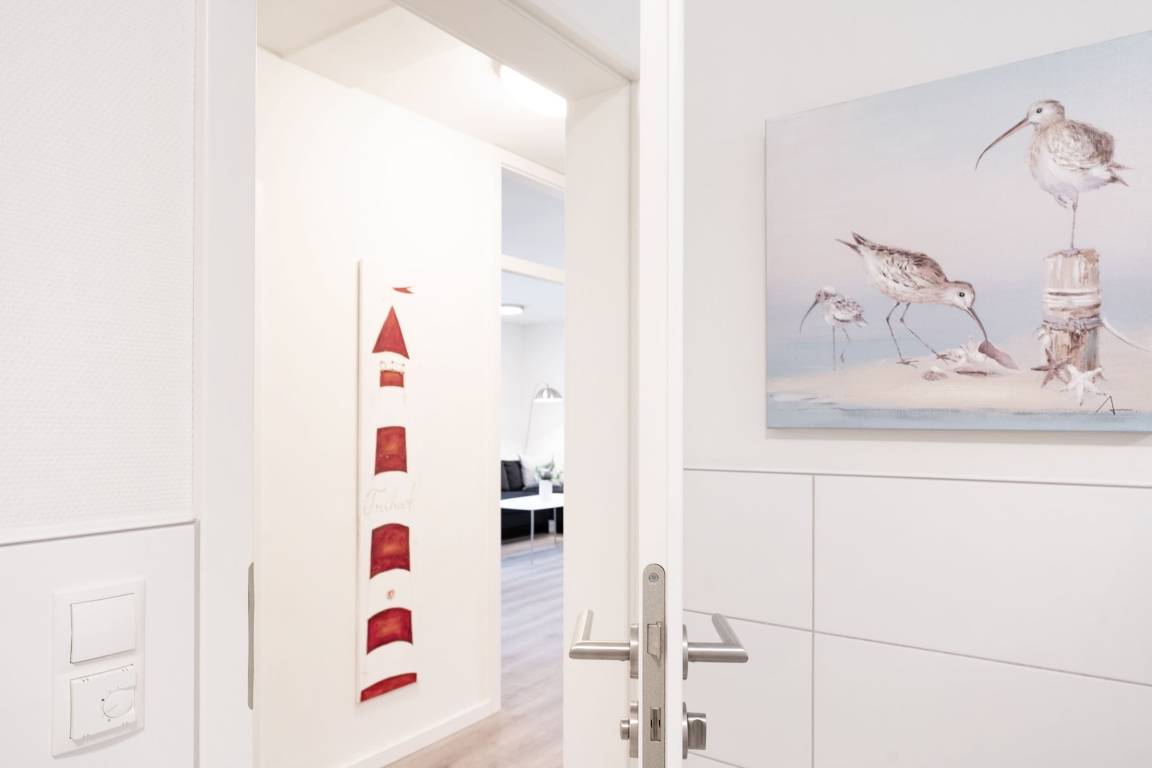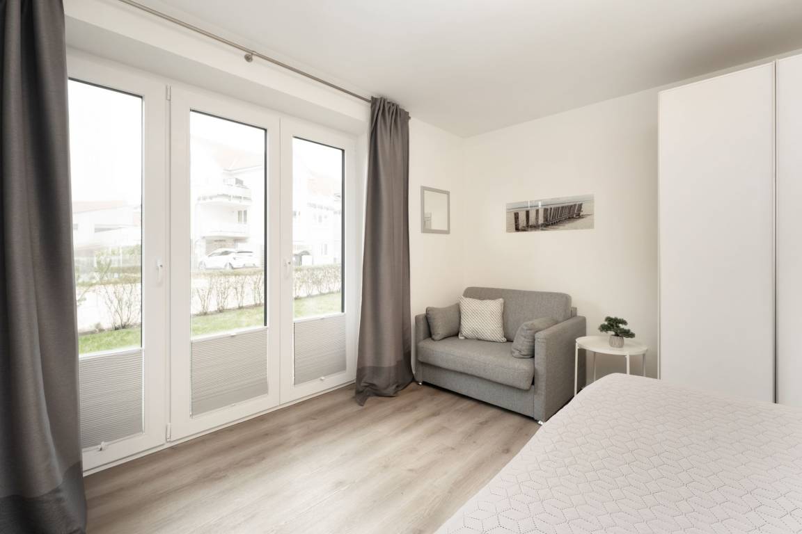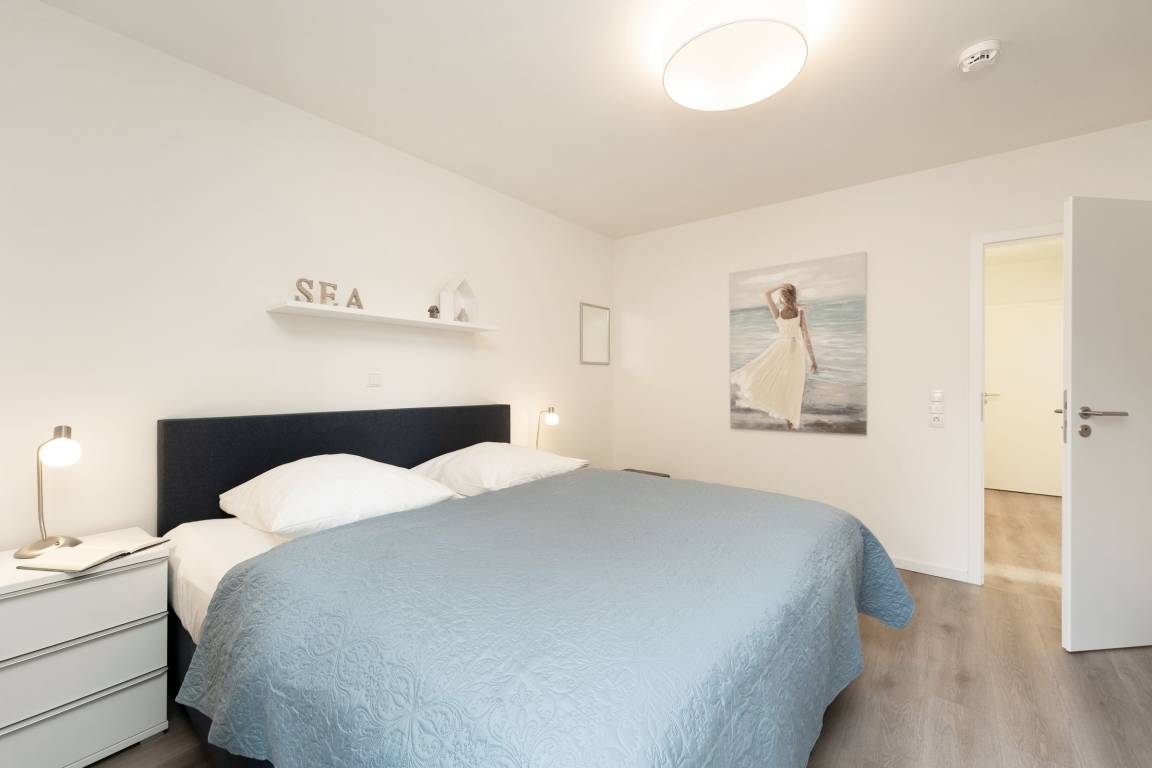 „Wohnungen mit zwei gleichwertigen Schlafzimmern sind selten und diese Wohnung hat zwei wirklich schöne und große Schlafzimmer mit sehr bequemen Betten. Die Ausstattung der Küche war bestens. Insgesamt sehr geschmackvolle Einrichtung und ein herrlich großes Bad mit barrierefreier Dusche. Zu der Wohnung gehörte eine PKW Stellplatz in der im Haus befindlichen Tiefgarage - super! Der Bäcker ist nur 2 Gehminuten entfernt und auch zum Strand gelangt man in nur 5 Gehminuten.“