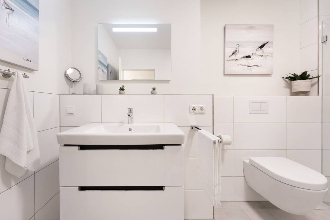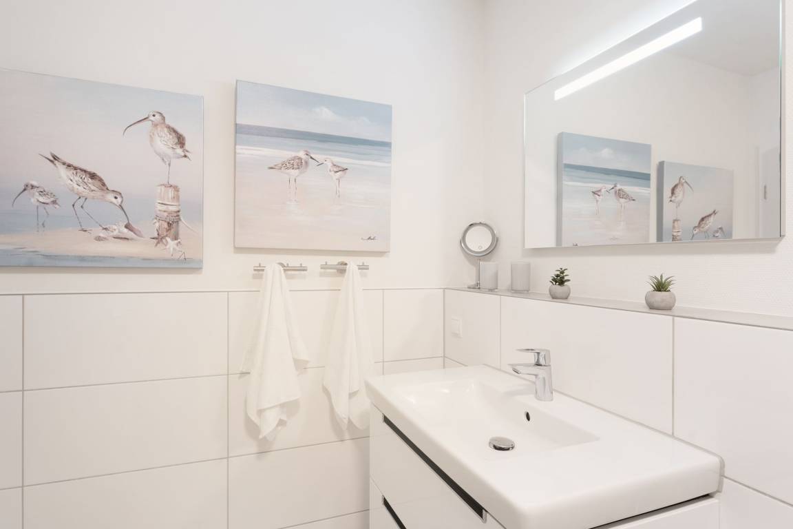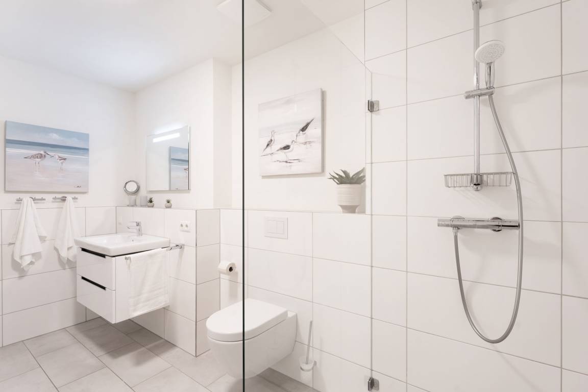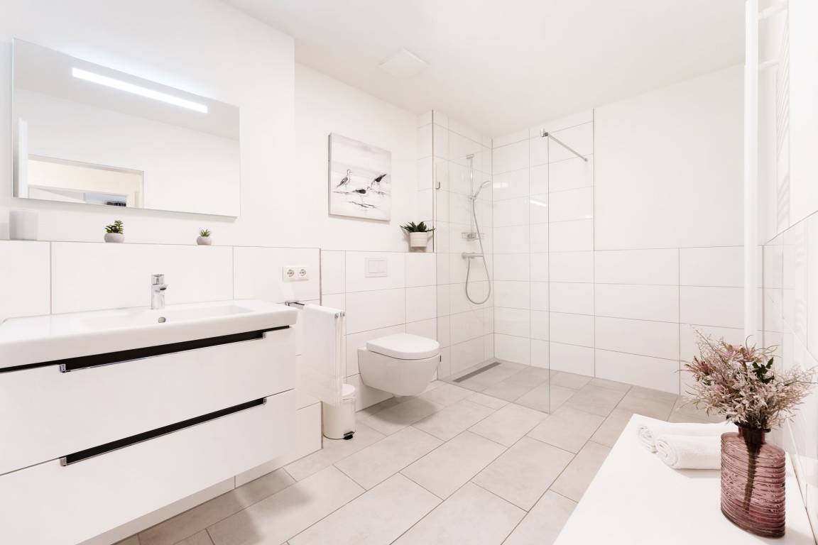 „Wohnungen mit zwei gleichwertigen Schlafzimmern sind selten und diese Wohnung hat zwei wirklich schöne und große Schlafzimmer mit sehr bequemen Betten. Die Ausstattung der Küche war bestens. Insgesamt sehr geschmackvolle Einrichtung und ein herrlich großes Bad mit barrierefreier Dusche. Zu der Wohnung gehörte eine PKW Stellplatz in der im Haus befindlichen Tiefgarage - super! Der Bäcker ist nur 2 Gehminuten entfernt und auch zum Strand gelangt man in nur 5 Gehminuten.“
