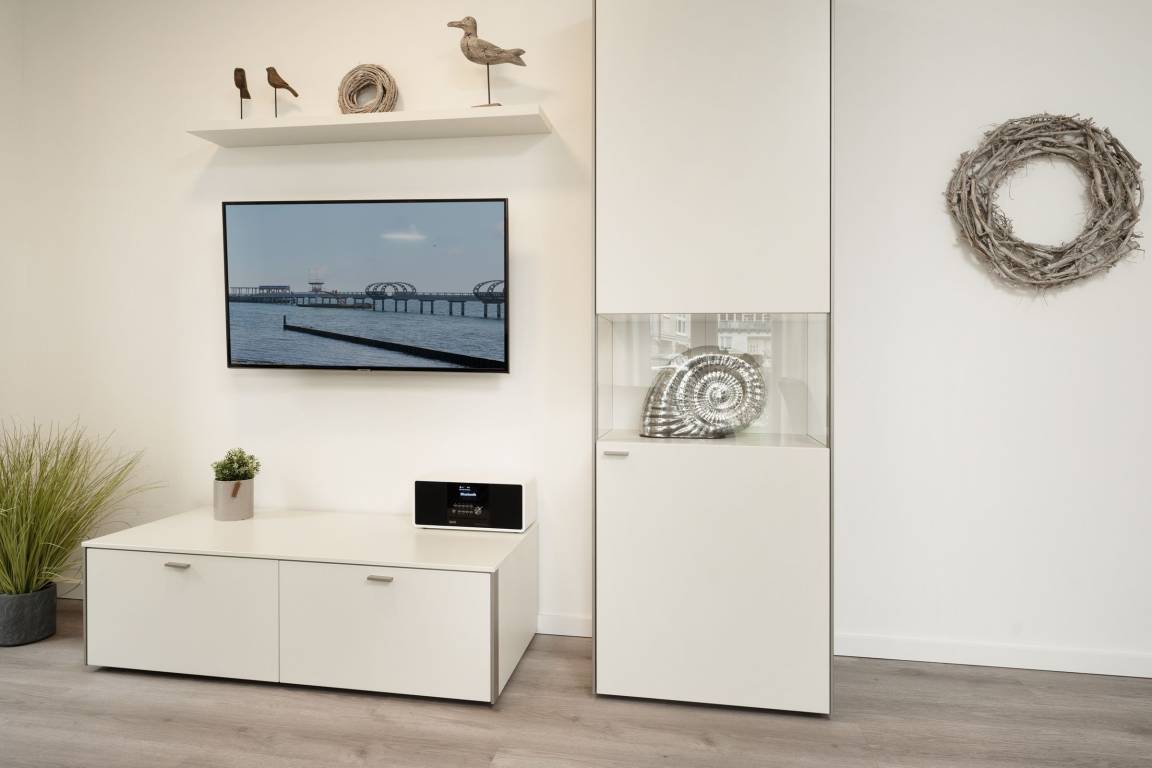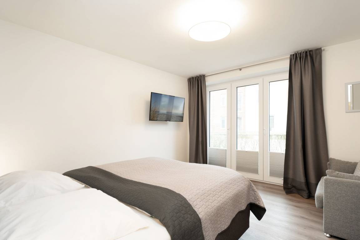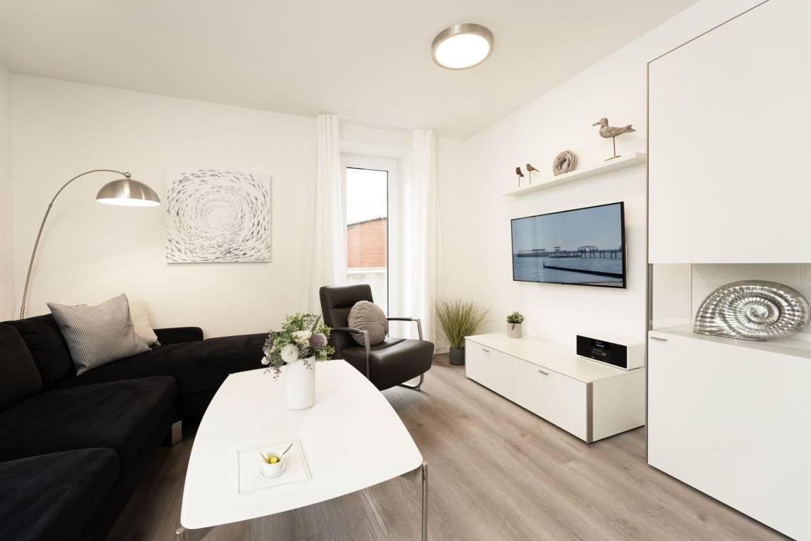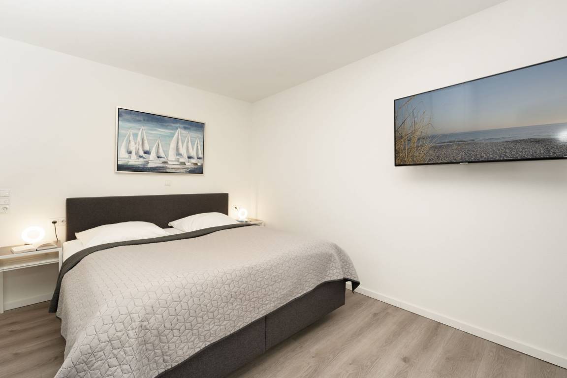 Herzlich willkommen! Diese zauberhafte Wohnung verfügt über einen großzügigen, liebevoll ausgestatteten Wohn-/Essbereich mit bequemer Sofagarnitur. Ein TV-Gerät sowie eine Stereo-Anlage sorgen für die richtige Unterhaltung. Die offen gestaltete moderne Küche mit Geschirrspüler ist gut ausgestattet und ermöglicht eine angenehme Selbstversorgung. Beide Schlafzimmer verfügen über je ein Boxspringbett (ca. 180x200 cm) und ein TV-Gerät, in einem Schlafzimmer befindet sich zusätzlich ein Schlafsessel. Das großzügige Badezimmer ist mit einer Walk-in-Dusche ausgestattet und bietet den Komfort, den man sich im Urlaub wünscht.