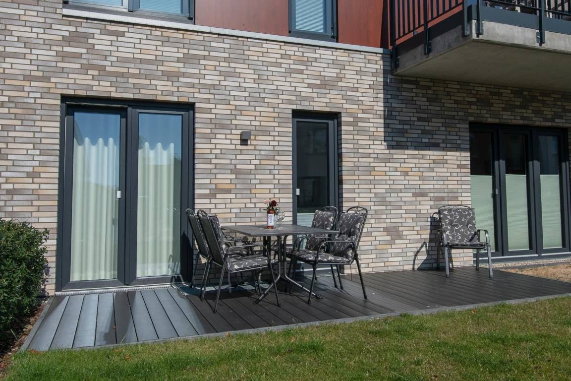 Ein schickes Feriendomizil im Herzen von Kellenhusen ... in der modernen Wohnanlage Störtebeker erwartet Sie die Ferienwohnung Viermaster im Erdgeschoss mit Terrasse und einer Wohnfläche von ca. 73 qm für max. 5 Personen plus Baby.