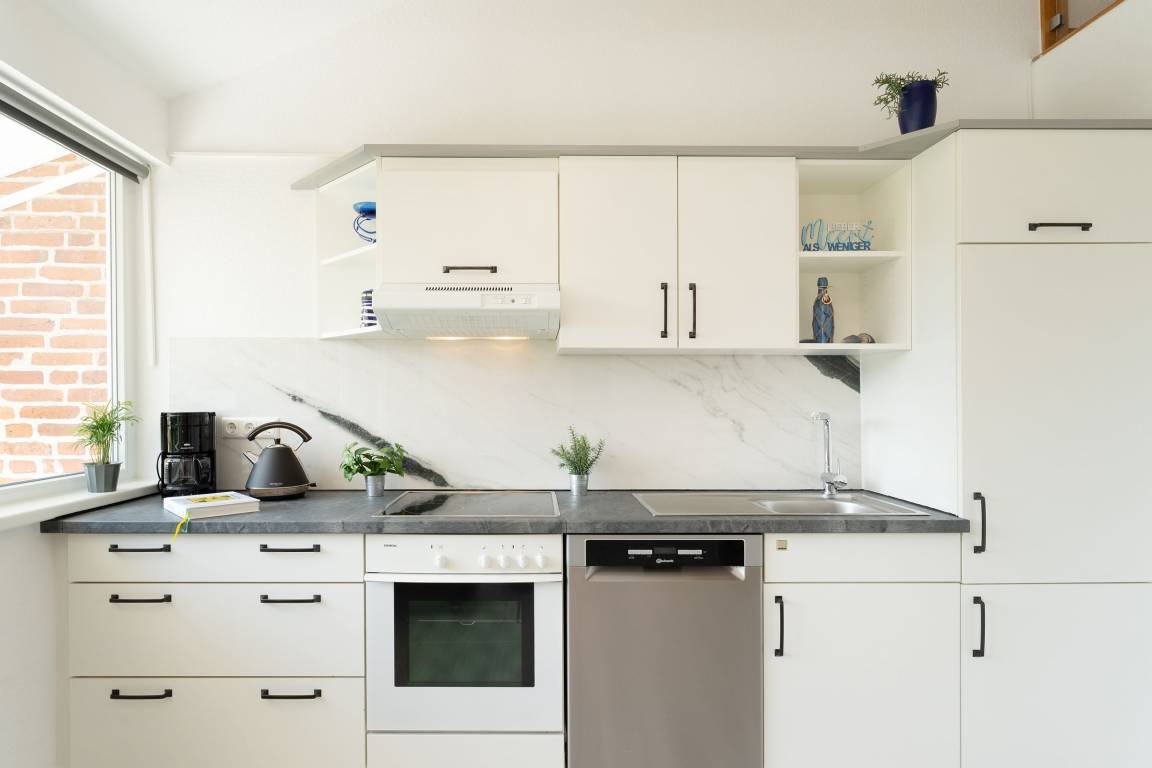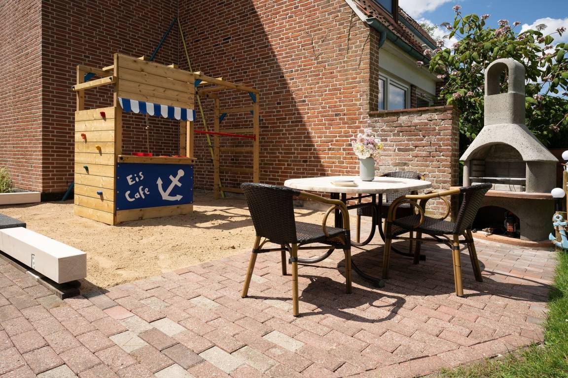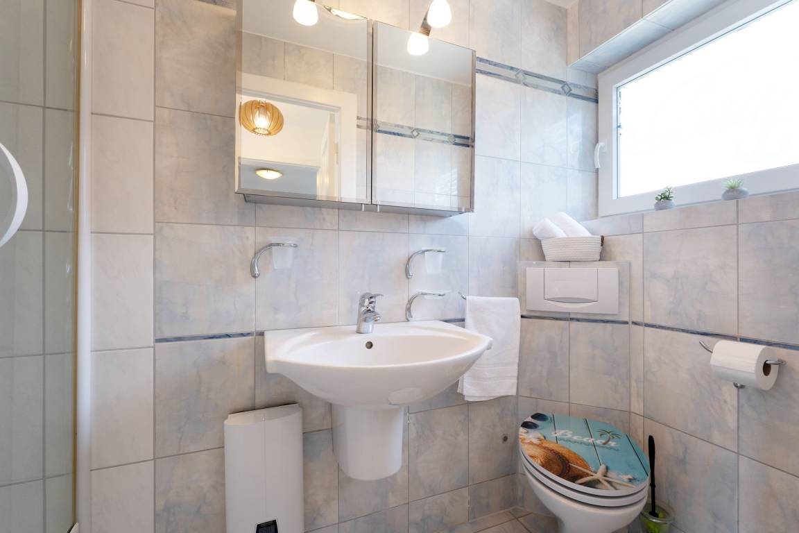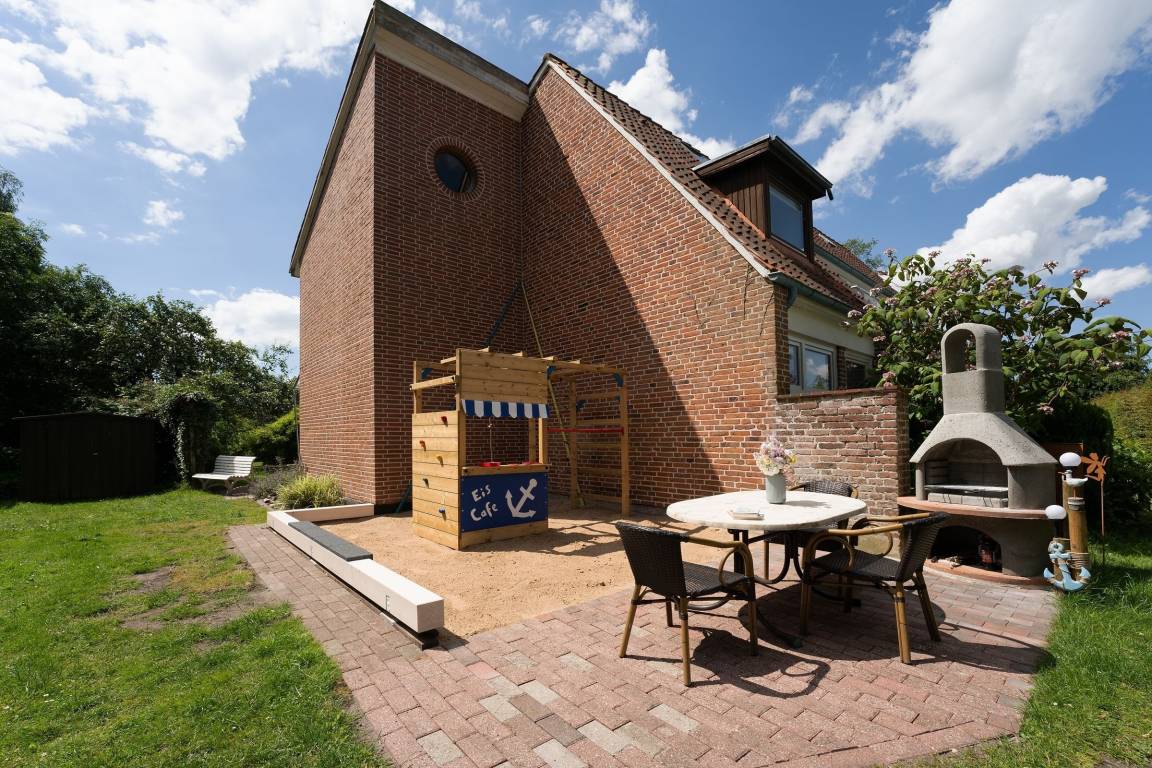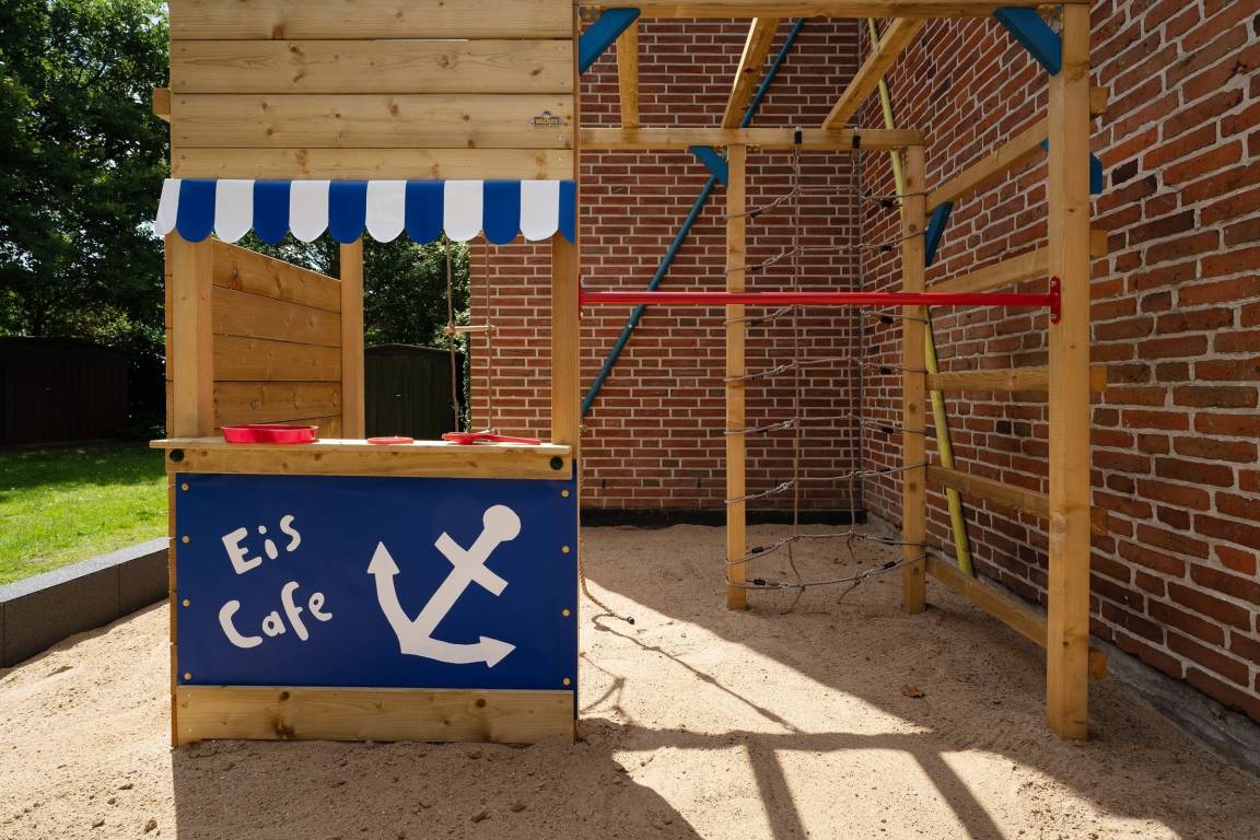 Offen und modern präsentiert sich die Ferienwohnung Ost. Die Galerie im hellen Wohnbereich sorgt für eine angenehme Atmosphäre. Auf beiden Ebenen haben Sie die Möglichkeit, vor dem TV-Gerät zu entspannen. Oben befindet sich dafür eine kuschelige Sofaecke, unten eine schicke Essecke. Die offene Küche mit Spülmaschine ist modern ausgestattet und macht eine Selbstverpflegung angenehm. Von der nahen Ostsee werden Sie sicher in einem der beiden Schlafzimmer träumen, in einem stehen ein Doppelbett (2x 90x200 cm) mit TV-Gerät, in dem anderen 2 Einzelbetten (je 80x200 cm). Auch das Sofa oben bietet einen Schlafplatz (140x200 cm). Entspannt in den neuen Tag bringt Sie das tageslichthelle Duschbad. Im Gemeinschaftsgarten warten eine Grillecke sowie für die kleinen Gäste ein Spielplatz mit Sandkasten und Schaukel. Ein Kinderhochstuhl gehört zum Objekt dazu.