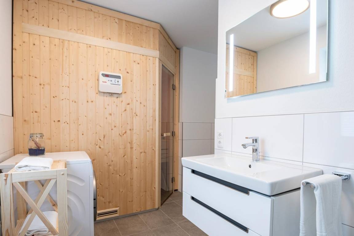 Ein Feriendomizil der Extraklasse: In der Wohnanlage Im Kirschgarten erwartet Sie diese schicke 3-Zimmer-Ferienwohnung für bis zu 3 Erwachsene und 1 Kind im Erdgeschoss mit großer Süd-Terrasse, eingezäuntem Garten und Sauna.