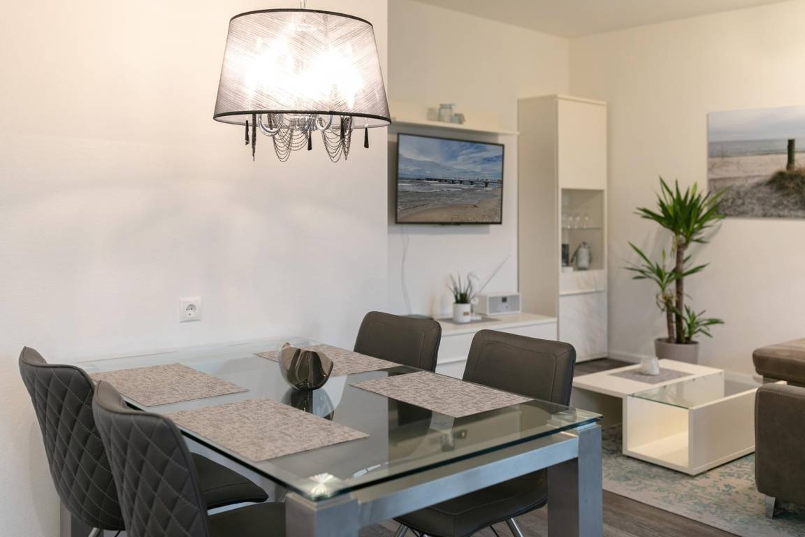 „Sehr schöne Ferienwohnung, geschmackvoll eingerichtet, Bäcker direkt um die Ecke, Strand in kurzer Entfernung, sehr bequem das Auto in der Tiefgarage parken und mit dem Aufzug in die Wohnung fahren, Anlage sehr sauber und ruhig, uns fehlte ein Bodenflitscher für die ebenerdige Dusche.“