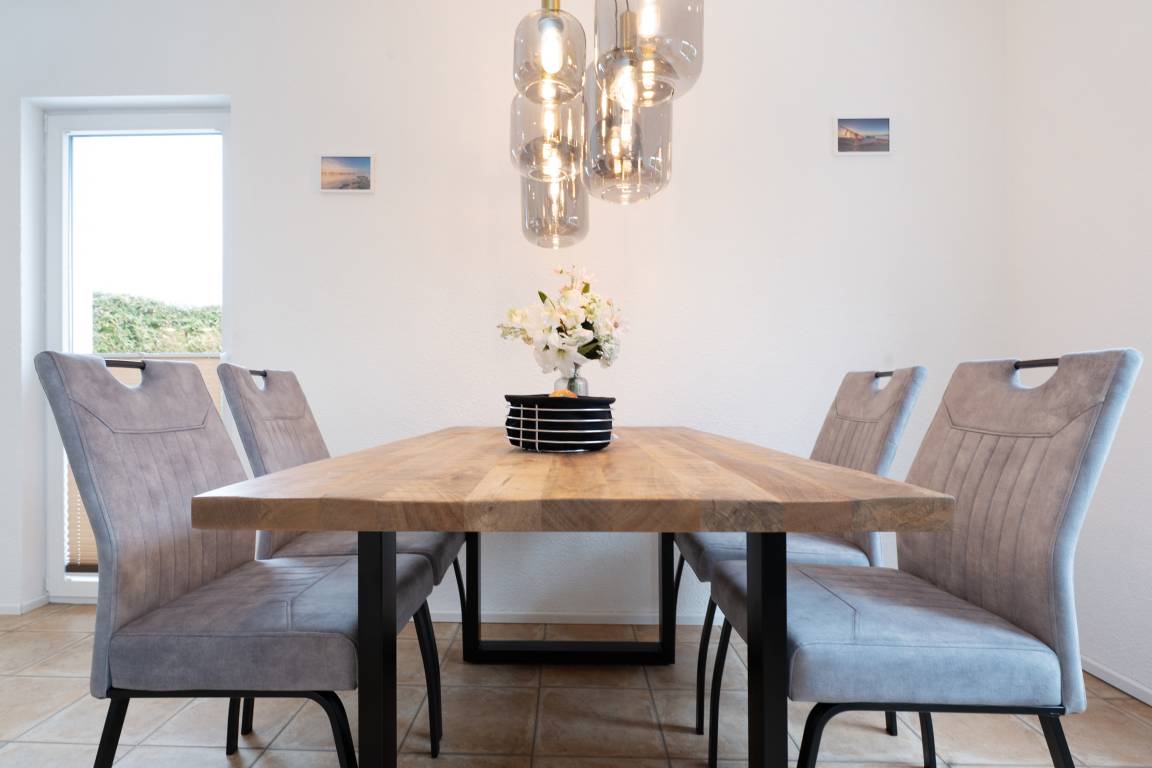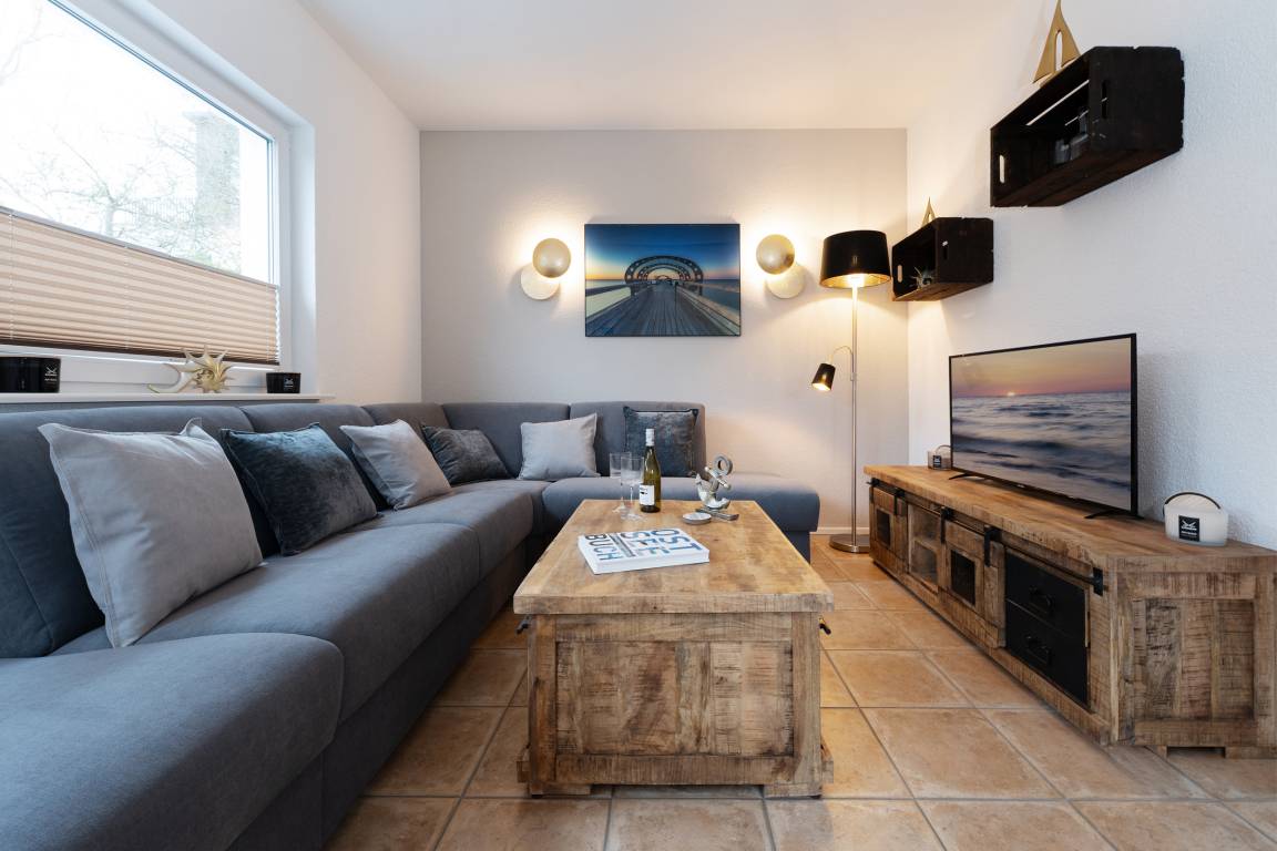Der helle Wohnbereich mit gemütlicher Sofaecke, TV und einladendem Essplatz bildet das Herzstück des Hauses. Von hier aus gelangen Sie auf die beiden großzügigen Terrassen mit insgesamt ca. 38 m², ausgestattet mit hochwertigen Gartenmöbeln. Ob Frühstück in der Morgensonne, entspanntes Lesen oder ein geselliger Grillabend – hier finden Sie Ihren persönlichen Lieblingsplatz im Freien.