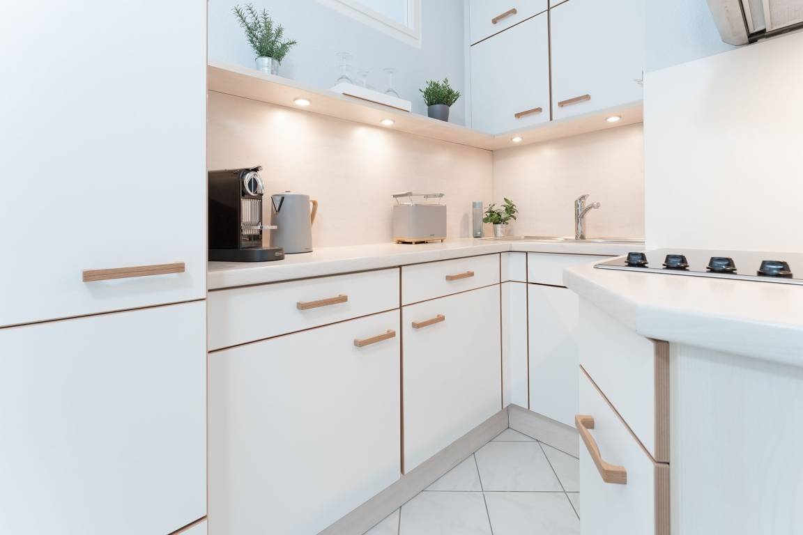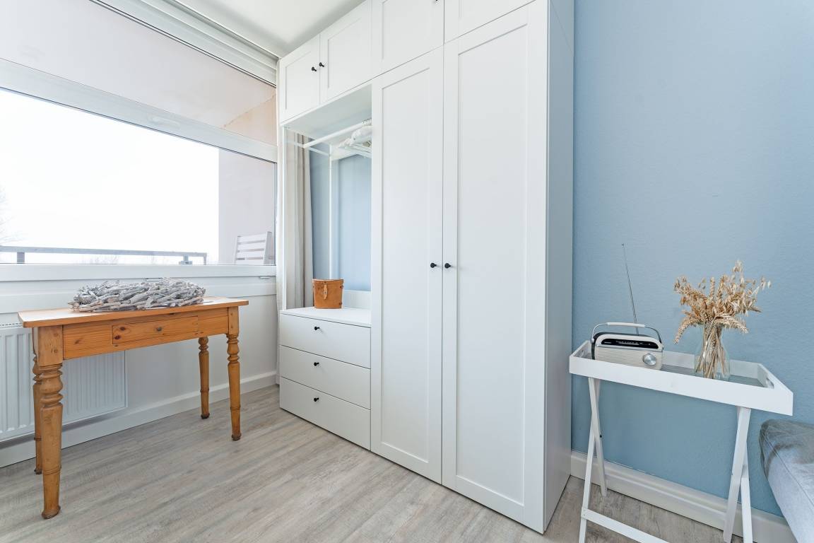 "Das Hygge-Glück" liegt in den Strandappartements am Leuchtturmweg – denn so heißt die charmante Ferienwohnung, die Ihnen eine gemütliche, glückliche Auszeit verspricht. Die Einrichtung wurde liebevoll ausgesucht. Entspannen Sie auf dem kuscheligen Sofa oder auf dem überdachten, möblierten Balkon mit Meerblick. Genießen Sie die gute Seeluft und lauschen Sie den Wellen. Während Ihres Aufenthalts können Sie sich dank der funktional ausgestatteten Kochnische mit Nespresso-Maschine prima selbst versorgen. Süß träumen werden Sie im Doppelbett (160x200 cm) im hinteren Bereich des Wohnzimmers oder auf dem Schlafsofa (140x200 cm) im separaten Schlafzimmer. Das innenliegende Duschbad bringt Sie gut in den neuen Tag. Auf geht es an den Strand, denn die Ostsee ist nur rund 100 Meter entfernt.