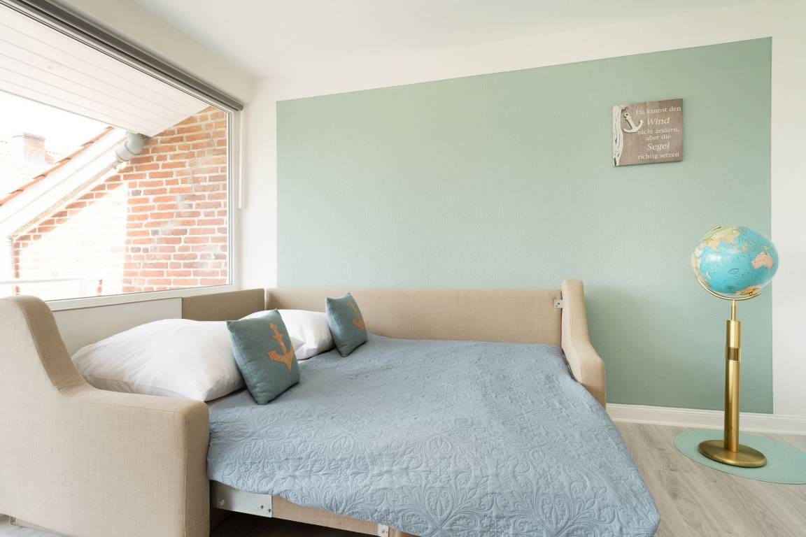 Wohnzimmer: 1 Schlafsofa ( 2 Topper á 80x200 cm), TV, Verdunkelungsrollo, Platz für Babybett