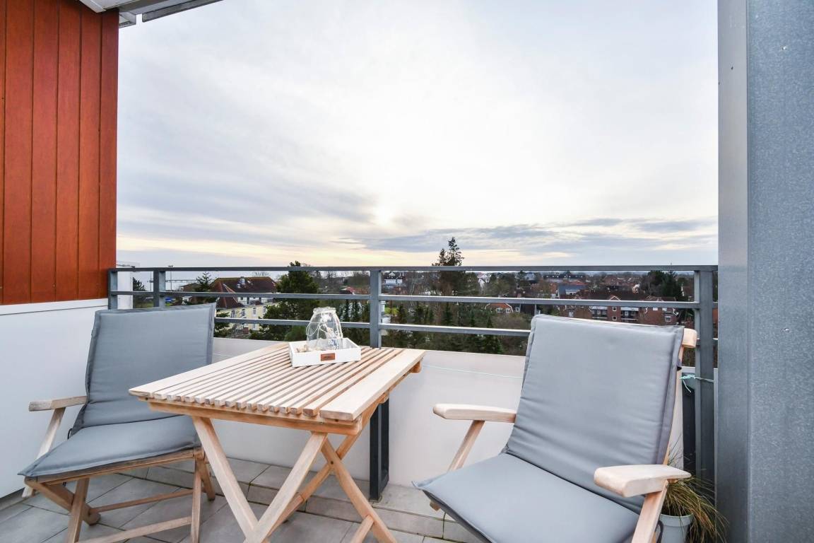 Urlaub der Extra-Klasse in Kellenhusen: Freuen Sie sich auf eine strandnahe, stylische 3-Zimmer-Ferienwohnung im 6. Stock mit Süd-Balkon, Fahrstuhl und einer Wohnfläche von ca. 49 m² für bis zu 4 Personen.