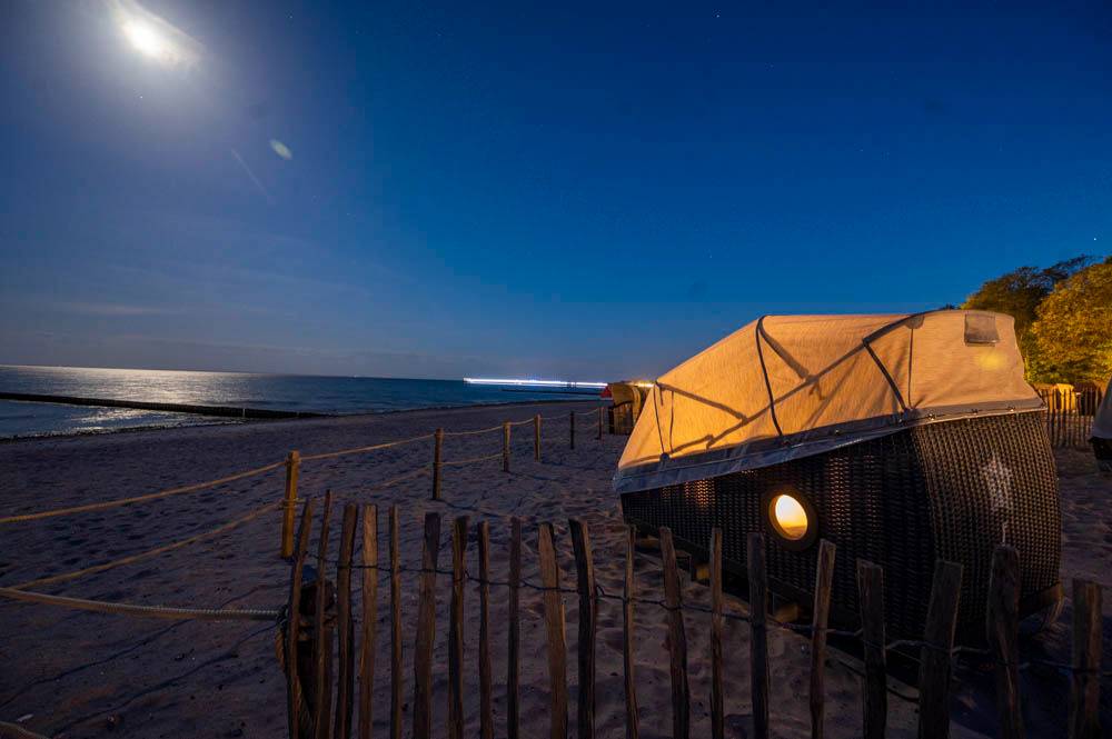 Lassen Sie Kindheitsräume am Strand von Kellenhusen wahr werden und erleben Sie Glücksgefühle pur bei einer Übernachtung in unserem neuen Schlafstrandkorb (120 x 200cm). Geschützt vor Sonne, Wind und Wetter und auch vor neugierigen Blicken genießen Sie eine unvergessliche Nacht mit Ausblick auf Ostsee, Mond und Sterne.