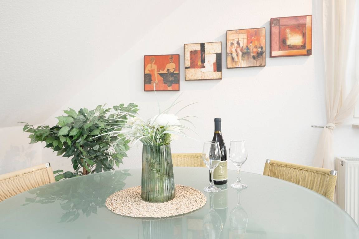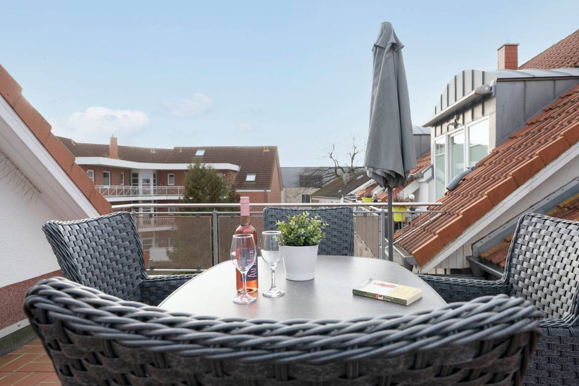 Wohnung der Extraklasse für Gäste, die das Besondere lieben. Im Apartmenthaus Ostseeperle begrüßt Sie das Feriendomizil in traumhafter Lage mit großer sonniger Dachterrasse. Sie wohnen auf 2 Ebenen und haben im Obergeschoss 2 schöne Schlafzimmer mit je einem Doppelbett (2x 90x200 cm bzw. 2x 80x200 cm), ein Bad mit Dusche sowie ein Bad mit Badewanne. Dann führt Sie eine Treppe ins Dachgeschoss, wo sich das große Wohnzimmer mit Schlafcouch, Essecke, Sat-TV und die moderne offene Küche mit Geschirrspüler befinden. Und nicht zu vergessen die herrlich große Dachterrasse. Um mit Ihren Lieben in Verbindung zu bleiben, können Sie den kostenfreien WLAN-Zugang nutzen.