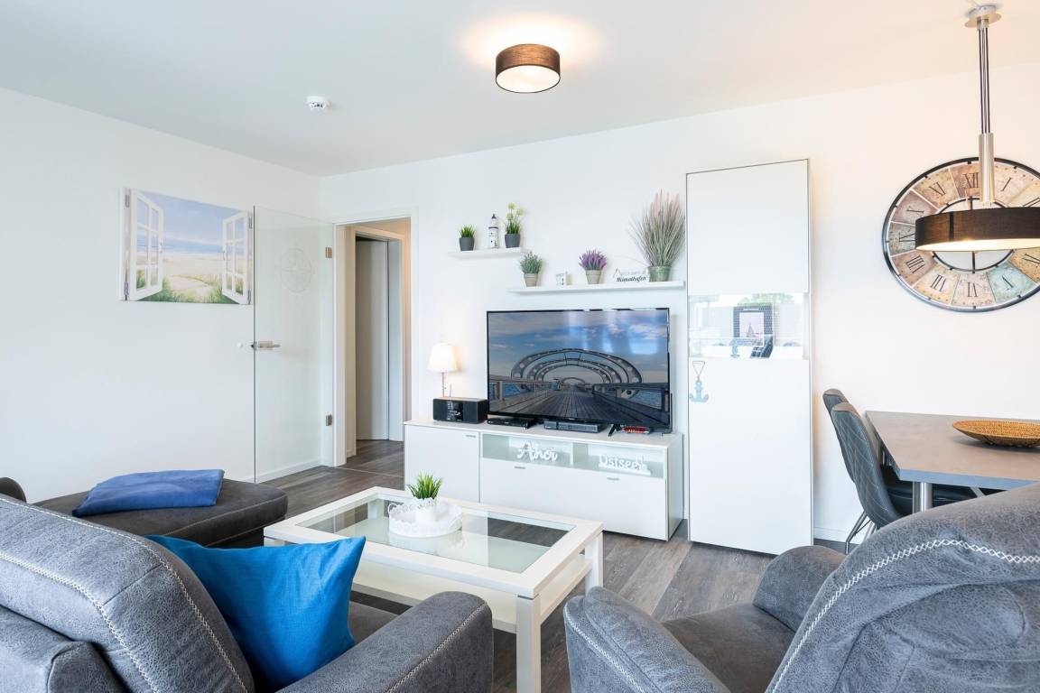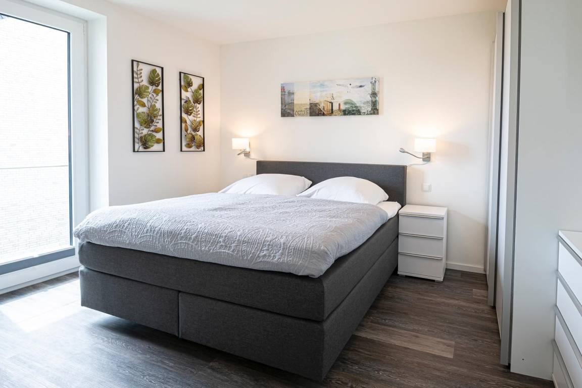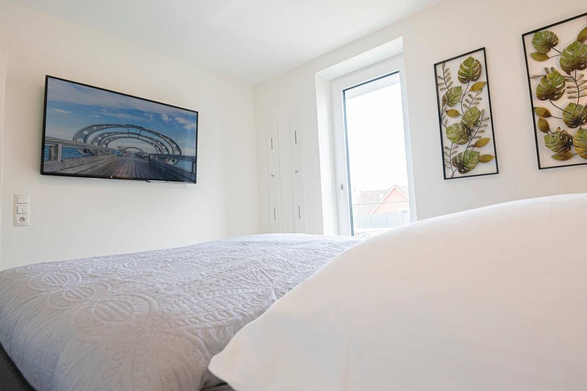 Das "Land der Träume" erreichen Sie ganz einfach im bequemen und großzügigen Boxspringbett (1 Matratze ca. 180x200 cm). Für eine angenehme Verdunklung im Schlafzimmer sorgen Plissees. In der Ferienwohnung gibt es im Wohn- und im Schlafzimmer jeweils einen Fernseher, im Wohnzimmer steht zusätzlich ein DVD Player. Zusätzliche Staufläche bietet ein Abstellraum.