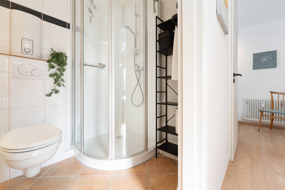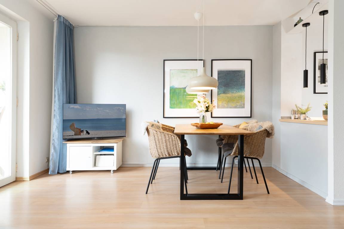 Herzlich Willkommen in Ihrem Zuhause auf Zeit. Diese gemütliche Ferienunterkunft liegt in einer verkehrsberuhigten Straße und erwartet Sie mit einem Wohnzimmer, das mit Schlafsofa, TV und Essecke erholsame und gesellige Stunden nach einem langen Strandtag verspricht. Von hier aus haben Sie Zugang zum Balkon in südlicher Lage, der zum Verweilen in der Sonne einlädt. In der im Wohnzimmer integrierten Küche mit Kaffeemaschine, Toaster, Mikrowelle, Ceran-Kochfeld, Backofen, Geschirrspüler, etc. können Sie sich den frischen Fisch aus der Region und andere köstliche Mahlzeiten zubereiten. Über den Flur erreichen Sie das erste von zwei Schlafzimmern, das mit zwei getrennt stehenden Betten (je 90x200 cm) ausgestattet ist. In einem weiteren Schlafzimmer verbringen Sie erholsame Nächte im bequemen Doppelbett (140x200 cm). Ein erfrischenden Start in den Tag garantiert das funktionale Bad mit Dusche und WC.