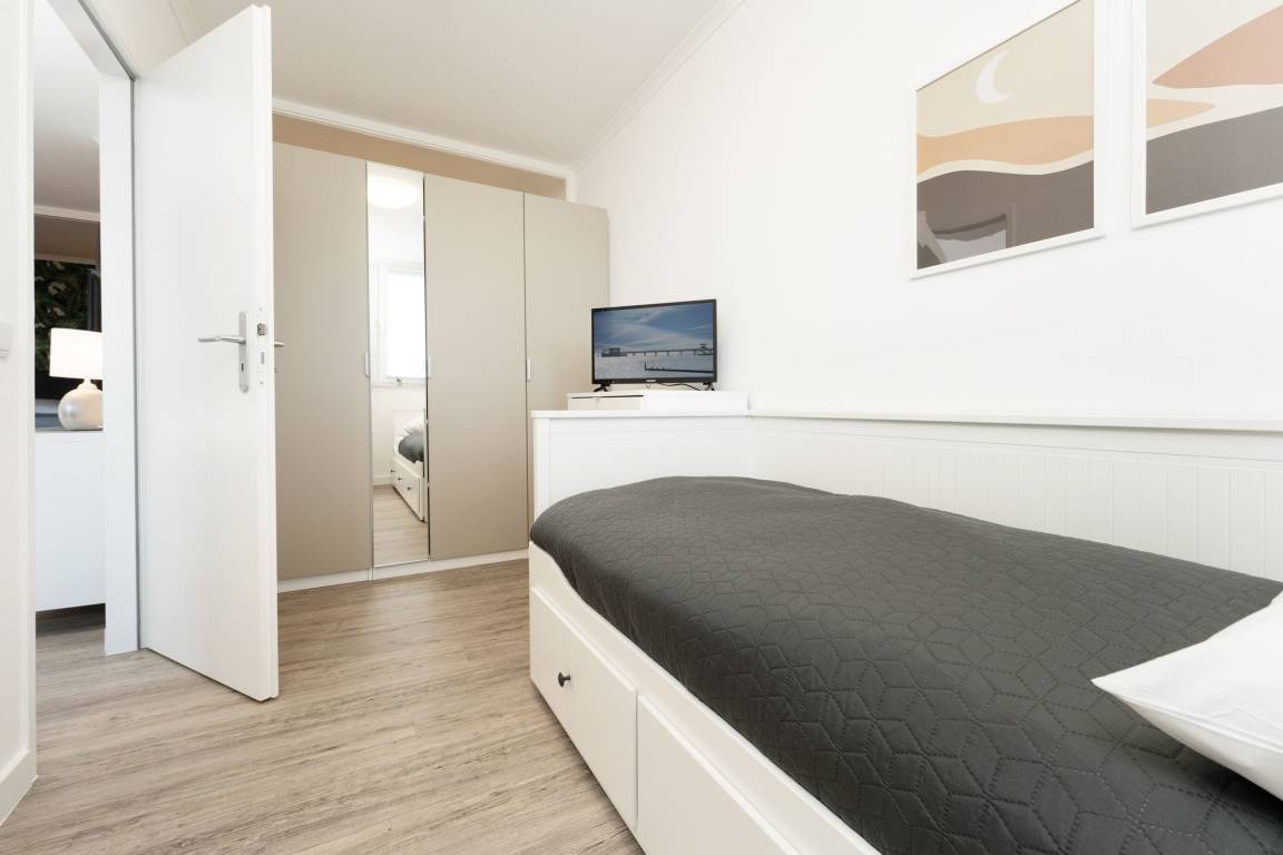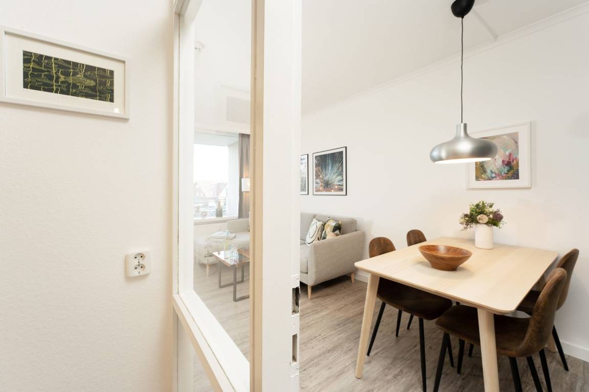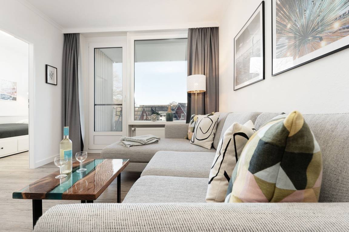 Der Name der Ferienwohnung Küstenquartier verrät es schon: Die Wohnung befindet sich ganz nah an der Küste, nur rund 100 Meter vom Ostseestrand entfernt. Die liebevoll ausgesuchte Einrichtung wird Sie sofort begeistern. Verbringen Sie Ihre wohlverdiente Auszeit im gemütlichen Wohn-/Schlafbereich mit Smart-TV (Streamingdienste zur Selbstanmeldung) oder an der frischen Seeluft auf dem möblierten, überdachten Balkon. Hobbyköche werden sich über die sehr gute Ausstattung der separaten, modernen Küche mit Induktionsherd, Nespresso-Maschine und Spülmaschine freuen. Nach einem gelungenen Abendessen verspricht das Doppelbett (140x200 cm) im Wohnzimmer angenehme Nachtruhe. Genauso das Kojenbett (2x 80x200 cm, ausziehbar) im Schlafzimmer. Das Duschbad punktet mit einem Föhn und einem Handtuchwärmer.