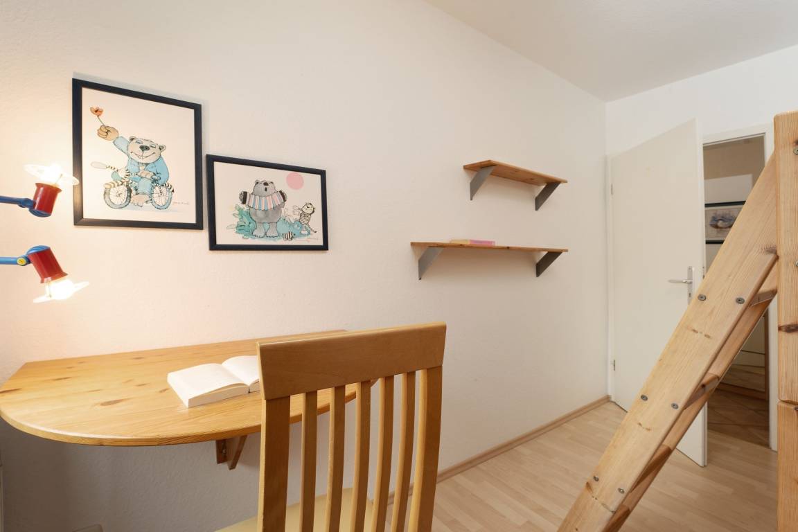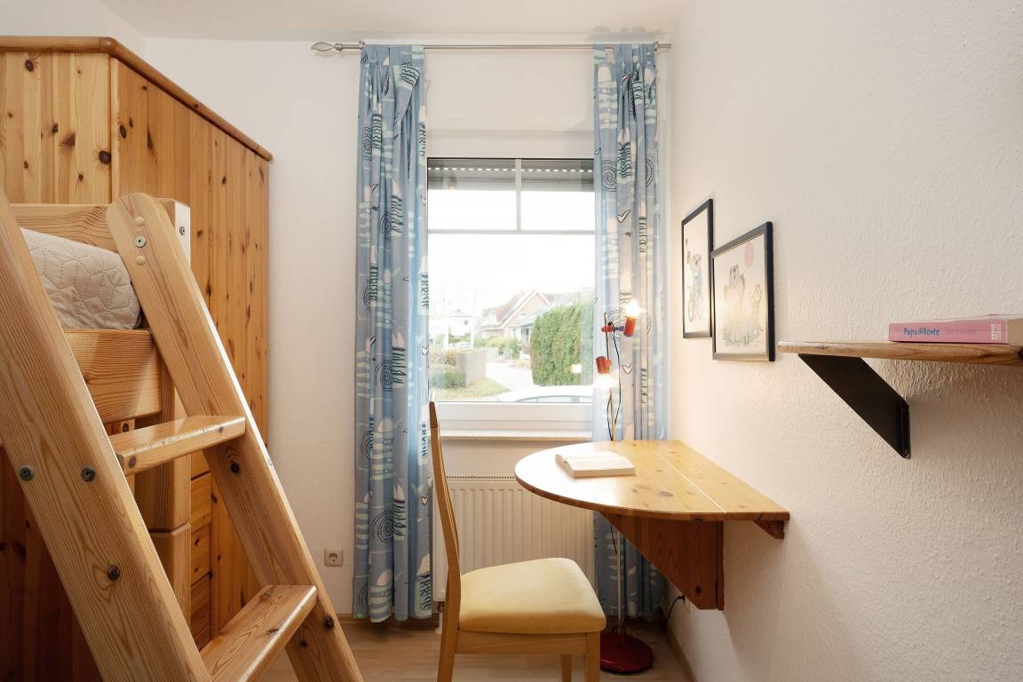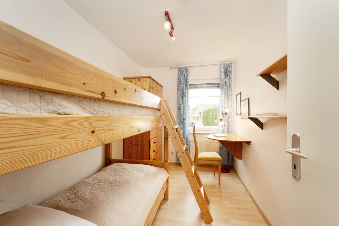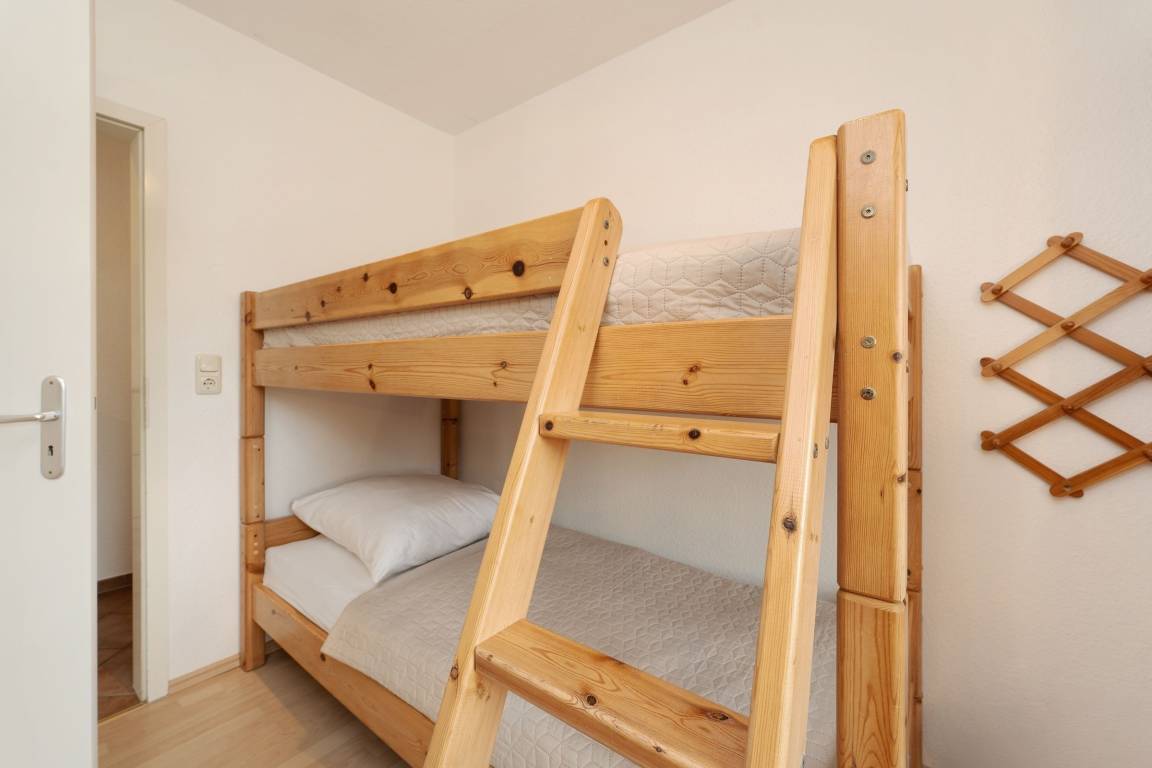 Schlafzimmer 2 (Hochparterre): 1 Etagenbett (je 90x200 cm), Kleiderschrank