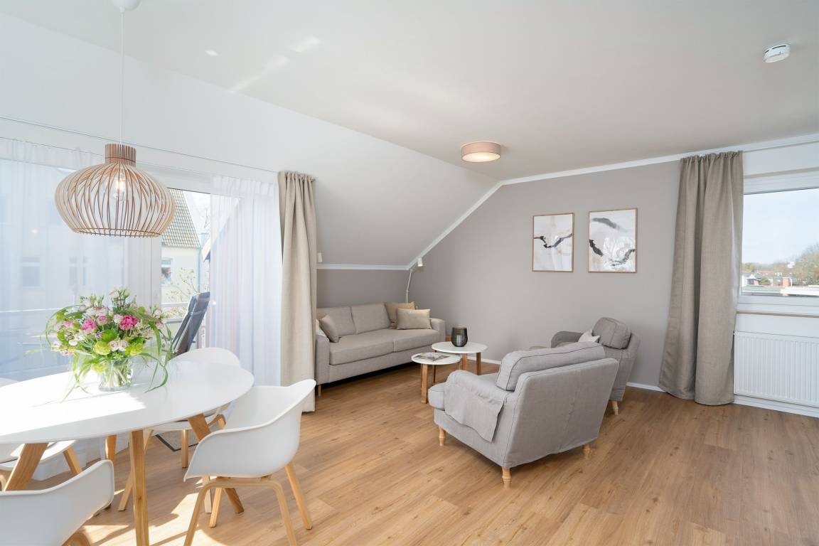 In 1. Strandreihe, und somit nur wenige Schritte von Strand und Promenade entfernt, liegt diese wundervolle Ferienwohnung in der 2. Etage der ruhigen und gepflegten Appartementanlage Haus Fernsicht. Verbringen Sie einen unvergesslichen Urlaub auf ca. 49 m² Wohnfläche für bis zu 2 Erwachsene und 2 Kinder in einzigartiger Lage mit freiem Blick auf das Meer.