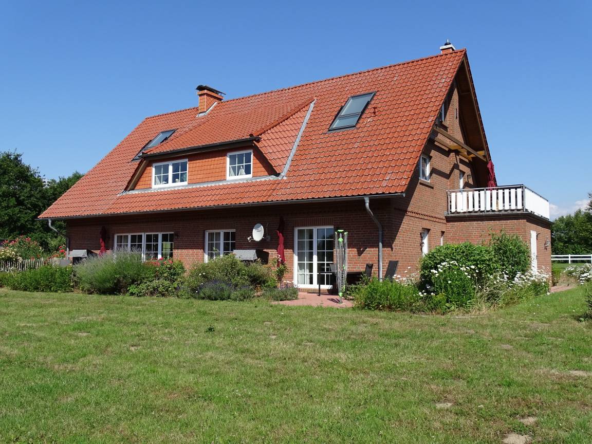 Urlaub auf dem "Friesenhof" in Dahmeshöved bedeutet, großzügiges und angenehmes Ambiente, ein wunderschöner Süd-Ost-Meerblick in einer einzigartigen Lage, das ist Ostseeurlaub und Erholung pur inmitten der Natur!...Ihr Feriendomizil befindet sich im gesamten 1. Stockwerk eines schön angelegten großen Wohnhauses in Friesenstilbauweise. Das große offene Anwesen bietet ausreichend Platz zur Erholung. Die Ferienwohnung gliedert sich in Eingangsbereich mit Garderobe, Gästebadezimmer mit WC, Kinderschlafzimmer mit 2 Einzelbetten, TV und Kleiderschrank, 1. Elternschlafzimmer mit Doppelbett, TV und Kleiderschrank, 2. Elternschlafzimmer mit TV, Kleiderschrank und Zugang zum möblierten Balkon mit Strandkorb, Vollbad mit Badewanne, Dusche (flacher Einstieg), Waschbecken, WC und Waschmaschine, einer separaten gut ausgestatteten Küche mit Esstisch und Bestuhlung, angrenzendem Abstellraum, sowie einem Wohnzimmer mit Sitzgruppe, Esstisch mit Bestuhlung, Holzofen und Zugang zum 2. Balkon in Südausrichtung. Vom Wohnbereich und allen Schlafzimmern haben Sie die nahe Ostsee in Sichtweite. Im Aussenbereich steht Ihnen ein großes "Fahrradcarport" und jede Menge Platz zur Verfügung. Für Ihren Urlaubsaufenthalt können Sie bequem, Kinderreisebett, Bettwäsche und Handtuchset's beim Vermittlungsbüro Wandelt -Strandurlaub Dahme- hinzubuchen. Wir wünschen Ihnen einen angenehmen Urlaubsaufenthalt auf dem Friesenhof Dahme.