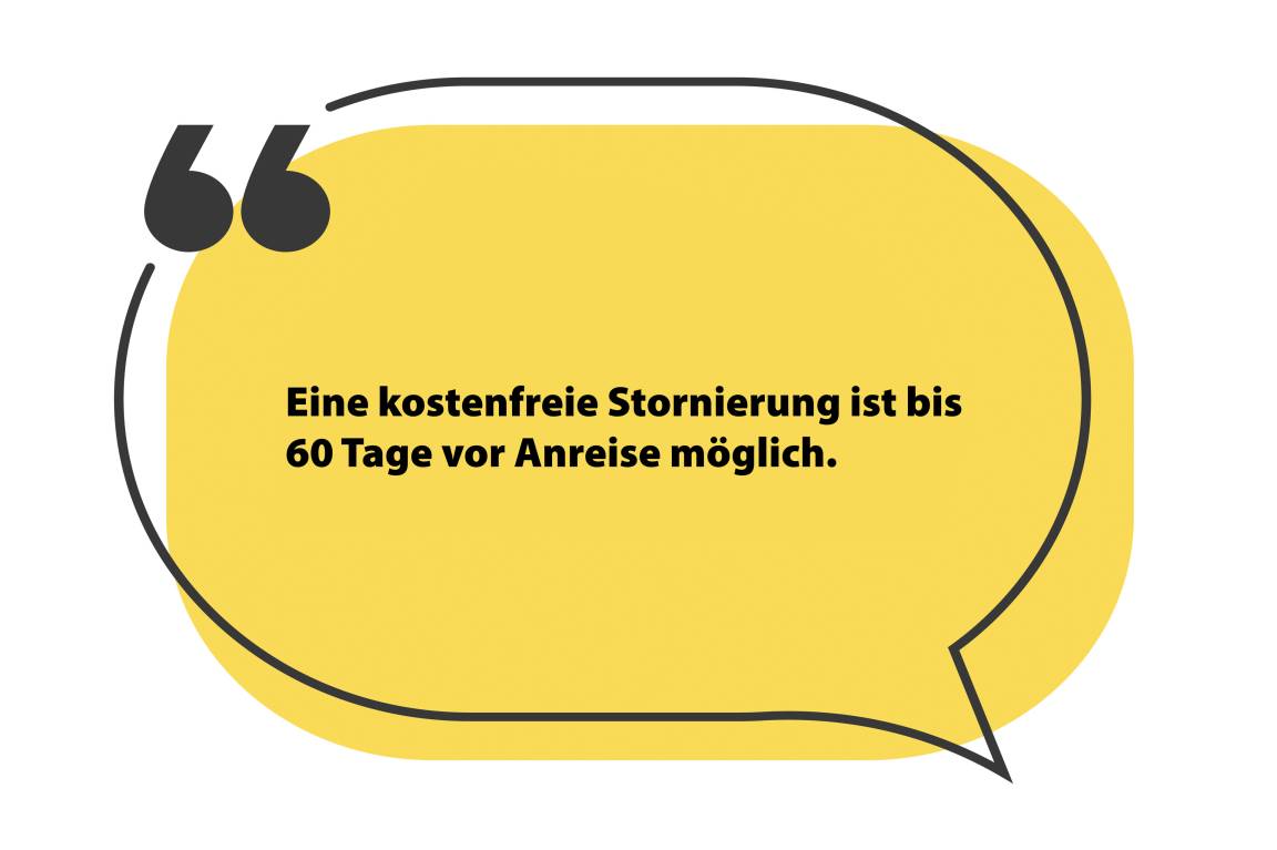 Eine kostenfreie Stornierung ist bis 60 Tage vor Anreise möglich.