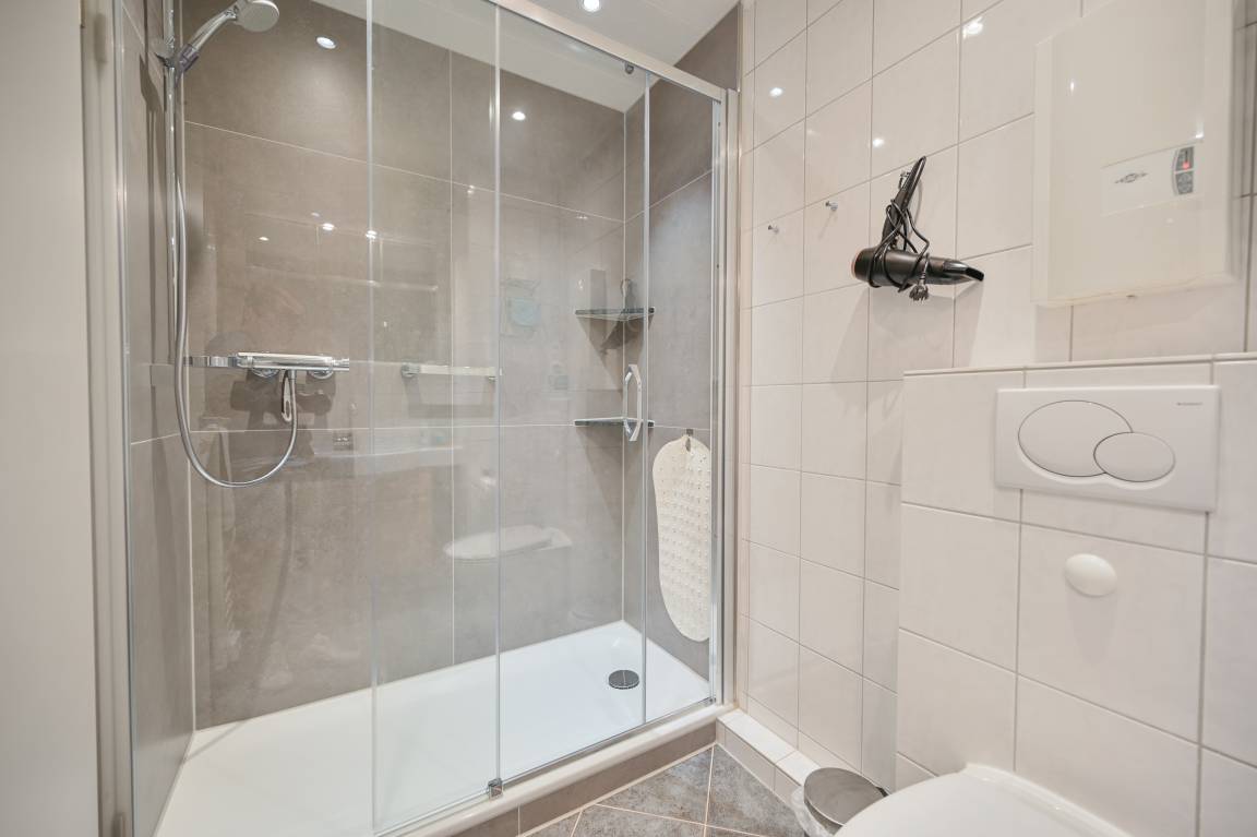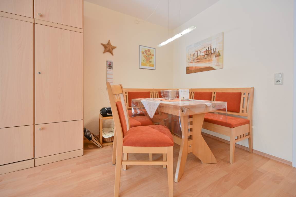 Die Ferienwohnung verfügt darüber hinaus über ein Bad mit Dusche und WC.