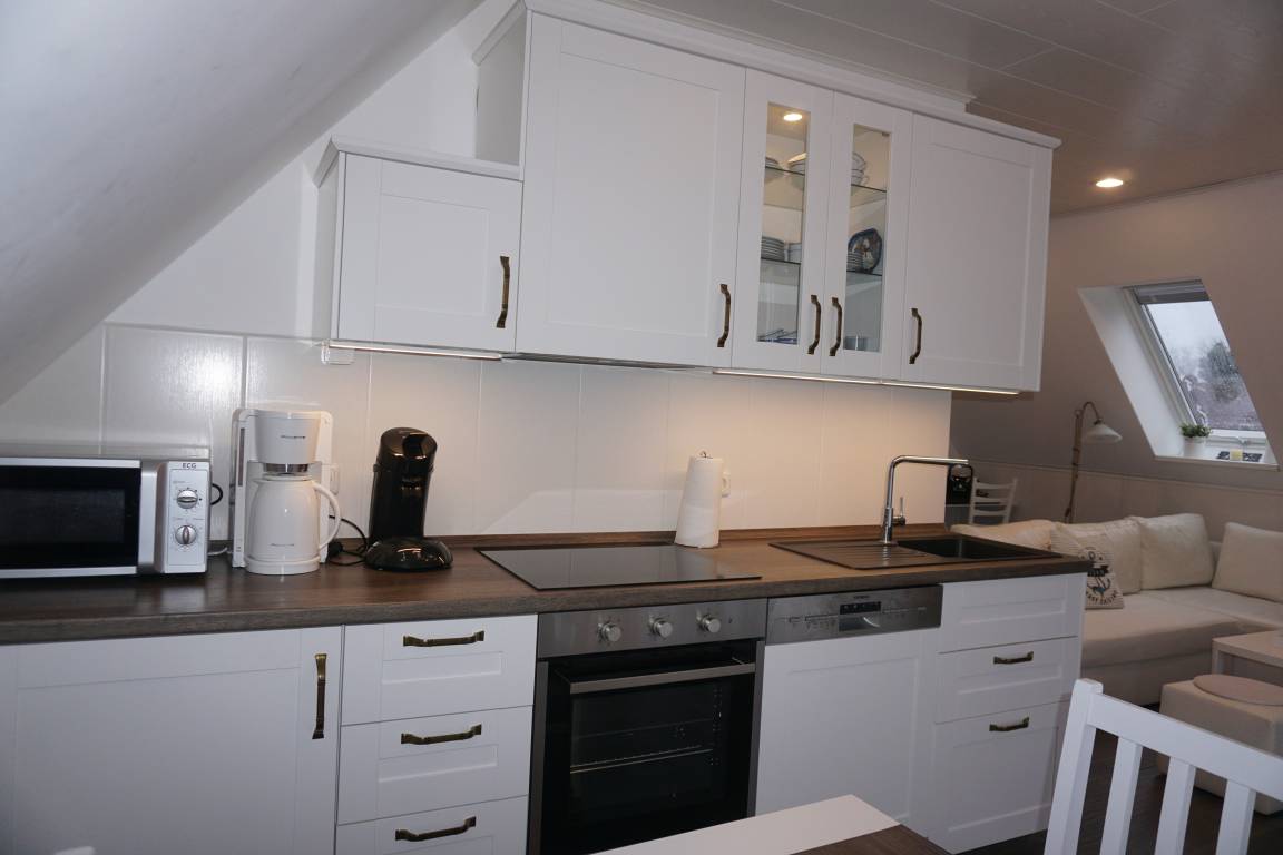 In der modernen Küche stehen Ihnen u.a. Spülmaschine, Backofen, Mikrowelle, 4 Platten Cerankochfeld, Kühlschrank mit Gefrierfach, Kaffeemaschine, Senseo-Padmaschine, Toaster, Eierkocher und Wasserkocher zur Verfügung.