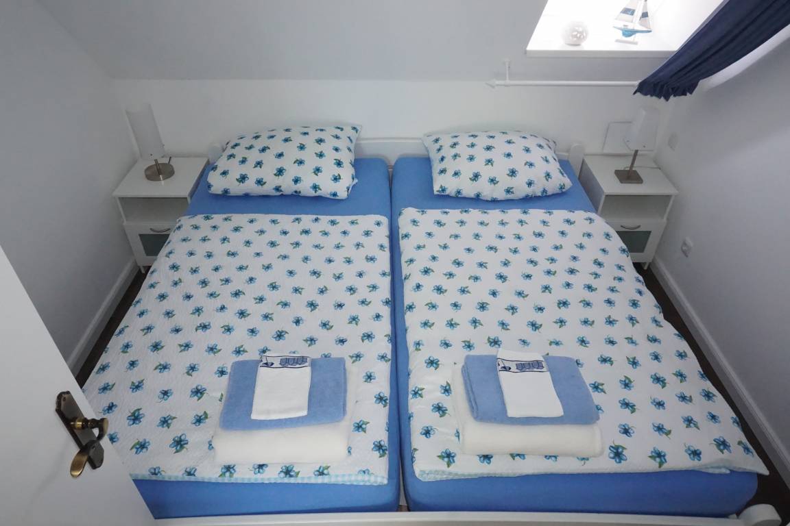 Im Schlafzimmer finden Sie ein Doppelbett (2 Matratzen 100 x 200 cm), zwei Nachttische mit Beleuchtung und zwei Kleiderschränke vor.