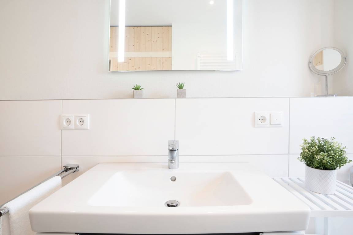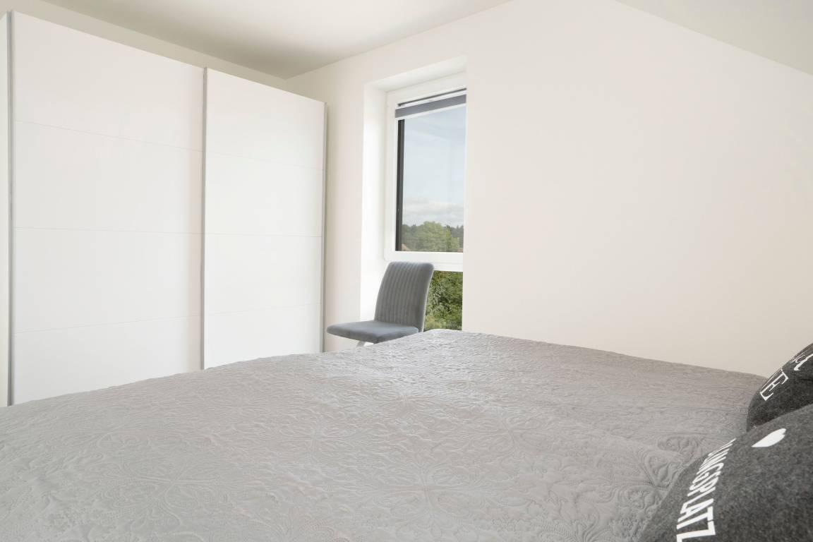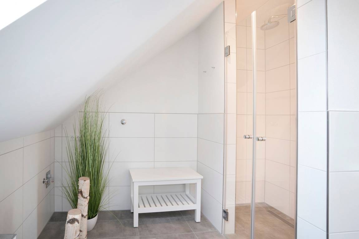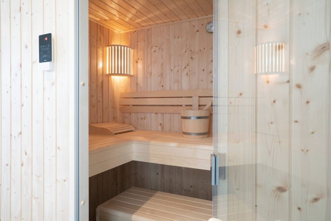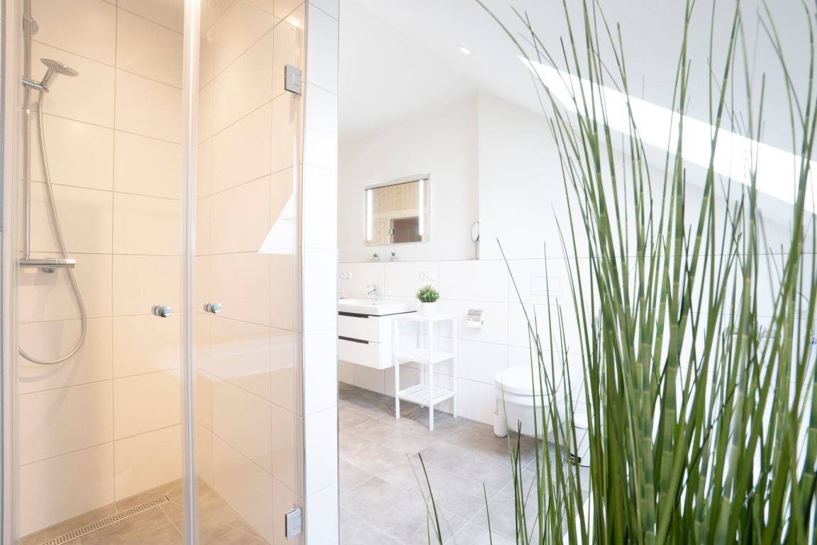 Eines der beiden separaten Schlafzimmer ist mit einem Boxspring-Doppelbett in Übergröße (2x 100x220 cm) und einem weiteren TV ausgestattet. Ihre Urlaubsgarderobe können Sie problemlos im Kleiderschrank verstauen. Im zweiten Schlafzimmer finden 2 Personen im Etagenbett Platz (je 90x200 cm). Das untere Bett kann mühelos durch eine ausziehbare Matratze um einen dritten Schlafplatz (90x200 cm) erweitert werden. Das voll ausgestattete Badezimmer bietet als Highlight eine eigene Sauna, in der es sich auch an kälteren Tagen herrlich entspannen lässt.