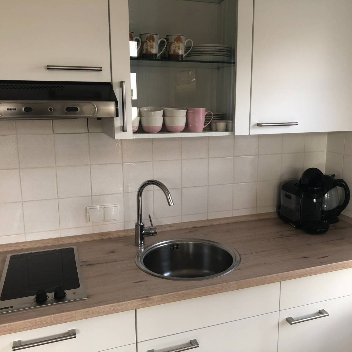 Die Wohnung hat eine schicke, hochwertige Küche mit Geschirrspüler! Sie schlafen in einem modernen Boxspringbett und/oder in einem elektrisch verstellbarem Einzelbett, welches tagsüber durch komfortable Sofakissen als Sofa verwandelt werden kann.