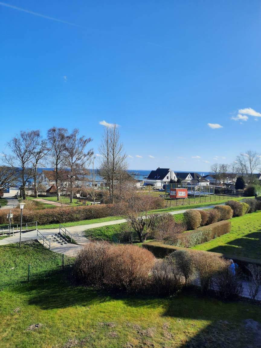 Der kombinierte Wohn-Schlafraum ist in eine Ess- und eine Couchecke aufgeteilt. Hier befindet sich für eine Person ein Schlafsofa mit Lattenrost (1,40). Des Weiteren beinhaltet der Wohnbereich einen SAT-TV Flachbildschirm-Fernseher und ein DAB+ Radio mit Bluetooth. Vor dem Wohnzimmer befindet sich ein Balkon, der mit Gartenstühlen bestückt ist. Von hier aus haben Sie, je nach Jahreszeit, einen eingeschränkten Seeblick. Ebenfalls haben Sie die Möglichkeit, die Rasenfläche des Grundstückes zu nutzen.