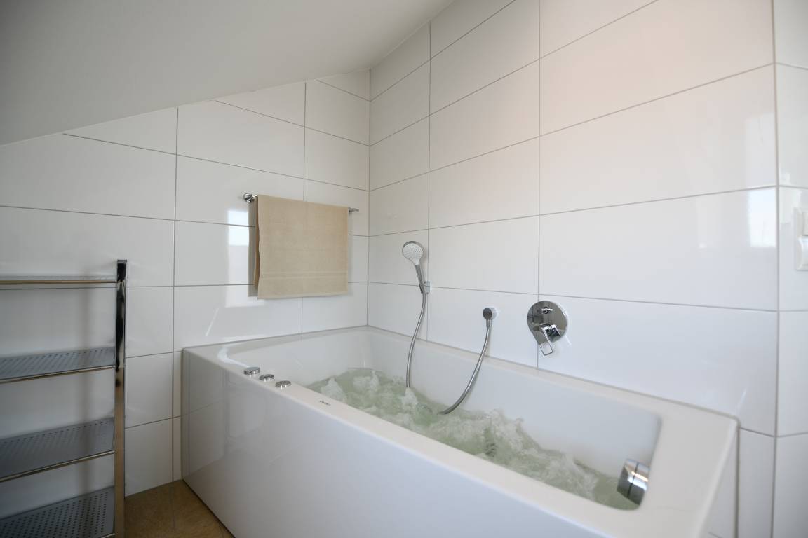 Ein Highlight ist das luxuriös ausgestattete Badezimmer. Neben einer bodengleichen Walk-In-Dusche mit Rain-Shower-Brause verfügt es auch über einen Whirlpool und eine Infrarot-Wärmekabine! Selbstverständlich stehen auch Föhn, ein Handtuch-Wärmer und eine Waschmaschine für Sie bereit.
