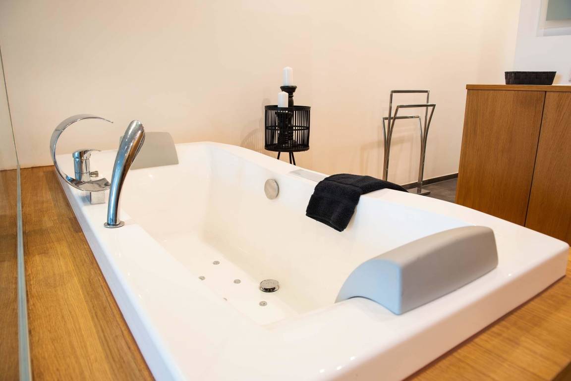 Ihr Wohlfühlfaktor steht bei mir im Fokus: Das Highlight der Ferienwohnung ist unsere Whirlpool-Badewanne.
