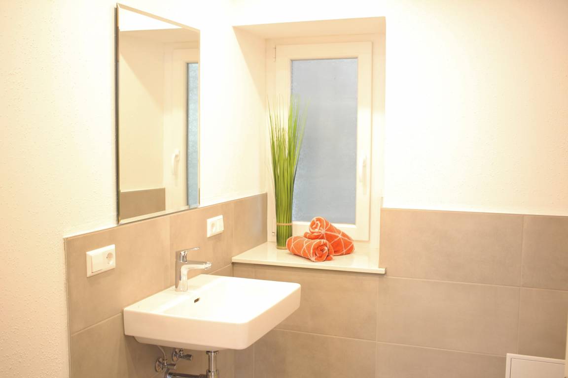 Die neu gestaltete, lichtdurchflutete und gemütlich eingerichtete Ferienwohnung mit 62m² für 2-4 Personen liegt im Hochparterre unseres Mehrfamilienwohnhauses. Sie beinhaltet eine Wohnküche mit Schlafsofa, ein separates Schlafzimmer mit Doppelbett, TV-Gerät sowie ein Badezimmer. Sämtliche Räume werden mit Fußbodenheizung beheizt. Die Wohnküche ist komplett eingerichtet (Kühlschrank inkl. Gefrierfach, Backofen, Ceran-Kochfeld, Spülmaschine, Krups Del-Gusto Kaffeemaschine, Toaster, Wasserkocher) und verfügt über einen Esstisch mit 4 Sitzplätzen.
