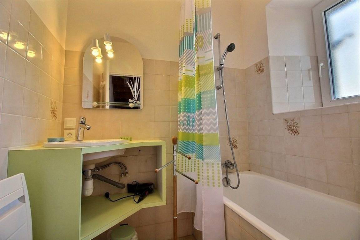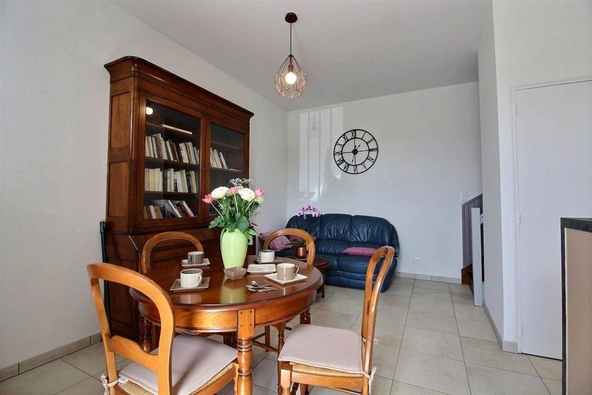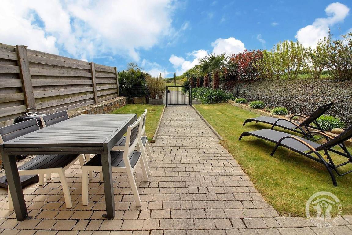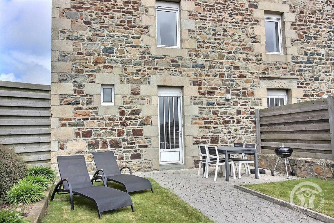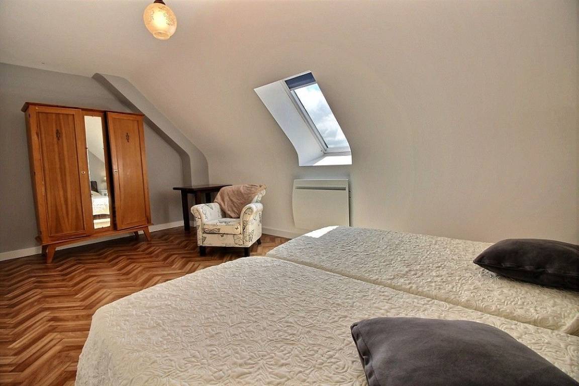 Dieses Ferienhaus bietet: Im Erdgeschoss: eine komplett ausgestattete Einbauküche mit Öffnung zu einem Ess-Wohnsalon, ein WC. Im 1. Stock: ein geräumiges Zimmer (1 Bett für 2 Personen 160x200), ein Badezimmer, ein separates WC. Im 2. Stock: ein großes Zimmer (2 Einzelbetten 90x190), einen Abstellraum, eine Toilette. Zur Verfügung auch ein kleiner umzäunter Garten und Parkmöglichkeit vor dem Haus.