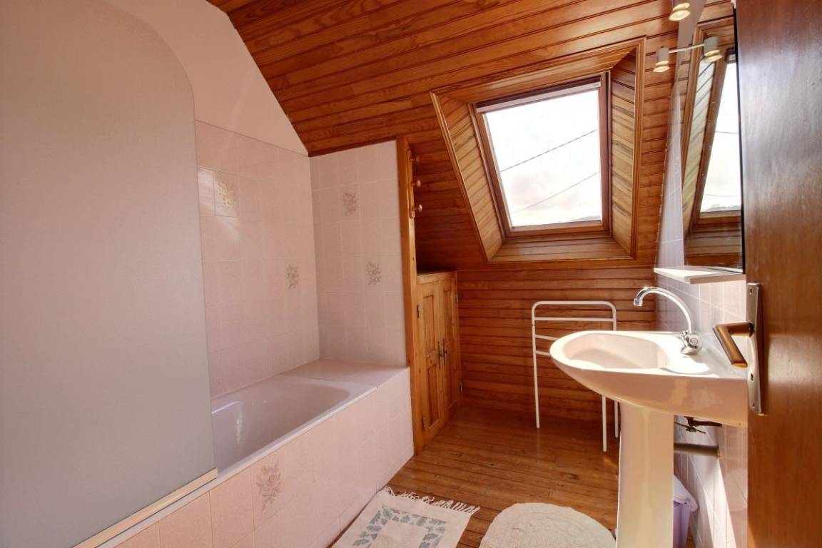 Im Obergeschoss befinden sich drei Schlafzimmer (zwei Doppelbetten, zwei Einzelbetten), ein Badezimmer mit Badewanne und ein WC.