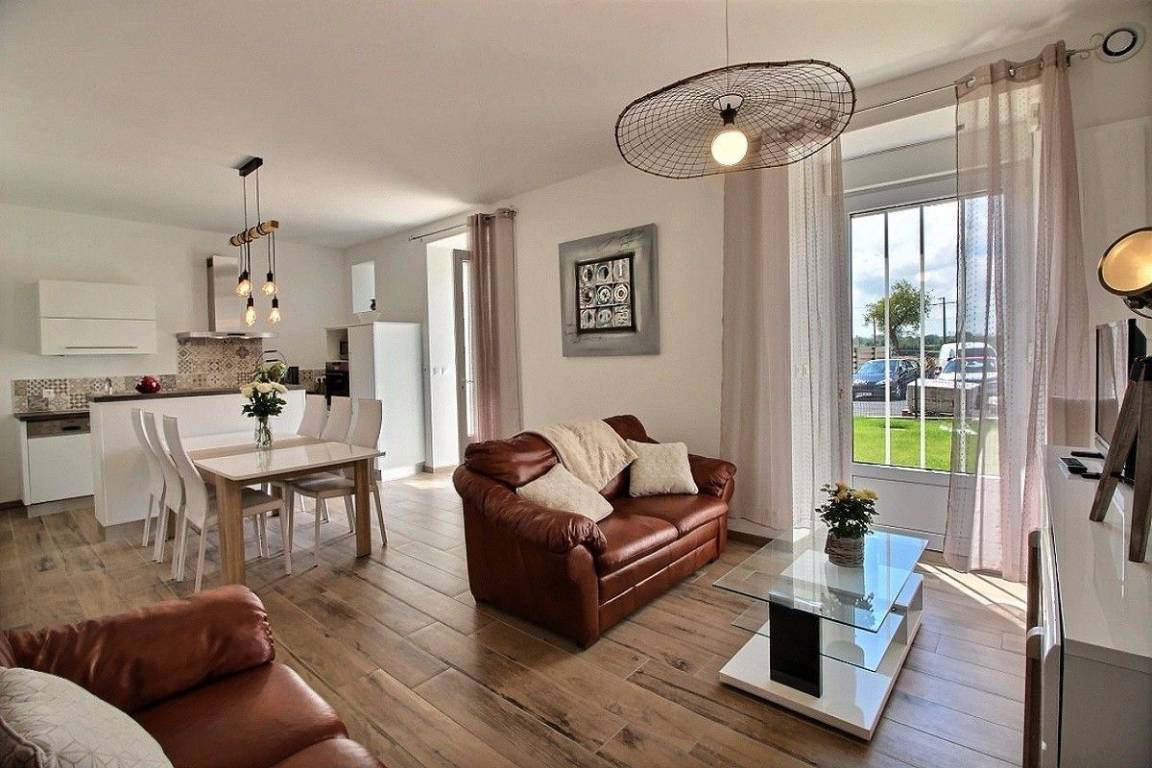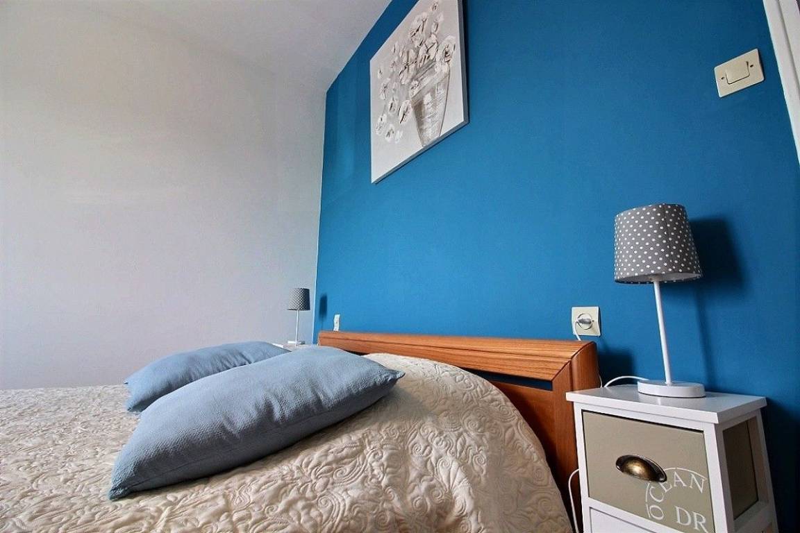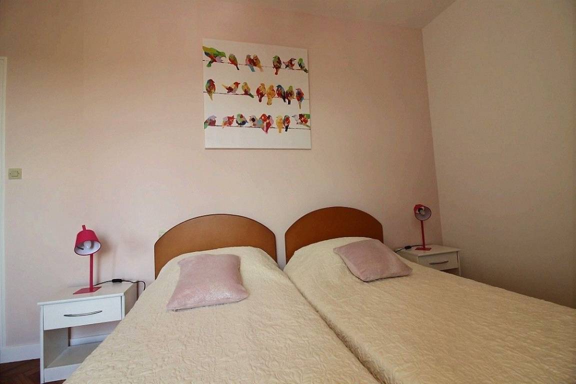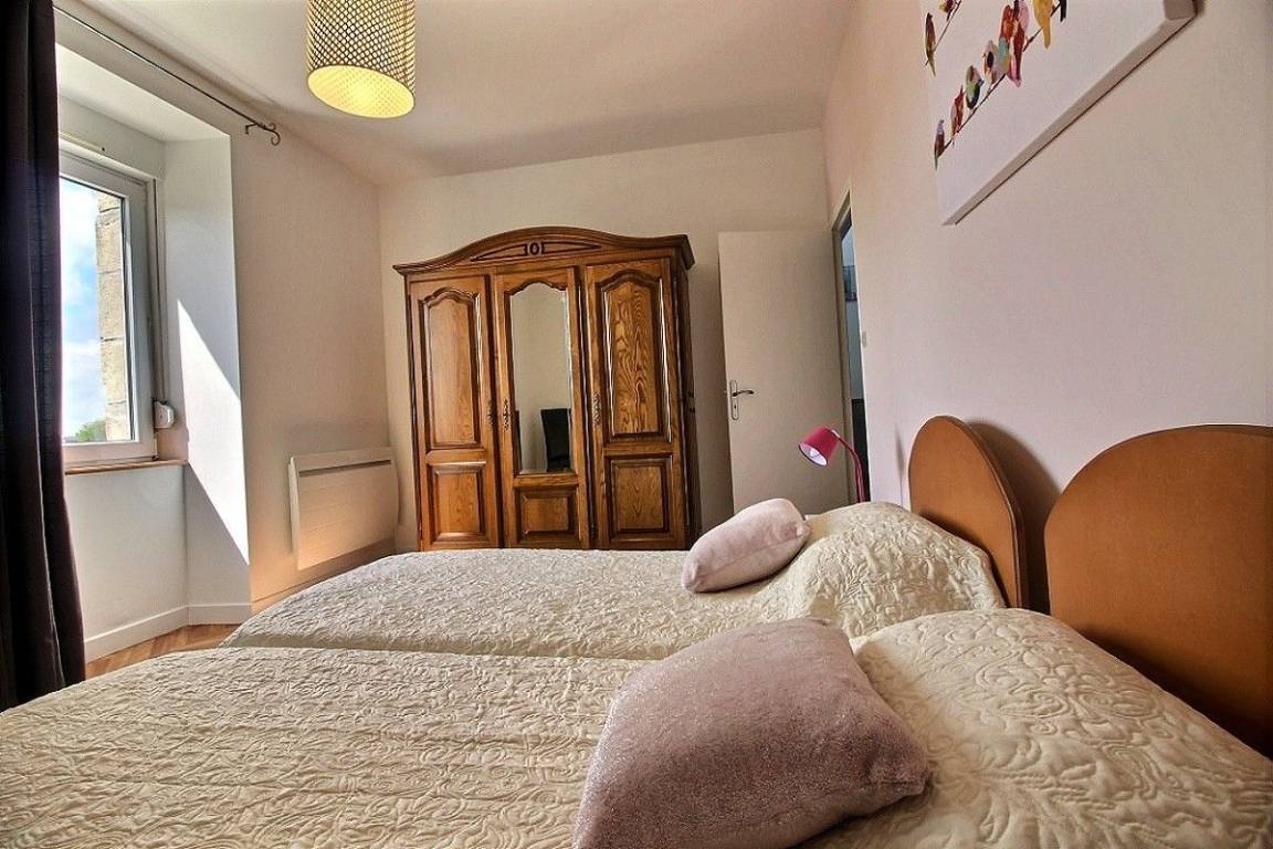 Dieses Ferienhaus bietet: Im Erdgeschoss: eine schöne, komplett ausgestattete Einbauküche mit ihrer Mittelinsel und mit Öffnung zu einem Ess-Wohnsalon, ein separates WC. Im 1. Stock: 2 Zimmer (2 Einzelbetten 90x190) (1 Bett für 2 Personen 160x200), ein Badezimmer. Im 2. Stock: 1 Zimmer (2 Einzelbetten 90x190), ein Bad mit WC. Zur Verfügung stehen auch: Kleiner Garten mit Rasenfläche und Terrasse. Parkmöglichkeit direkt vor dem Haus.