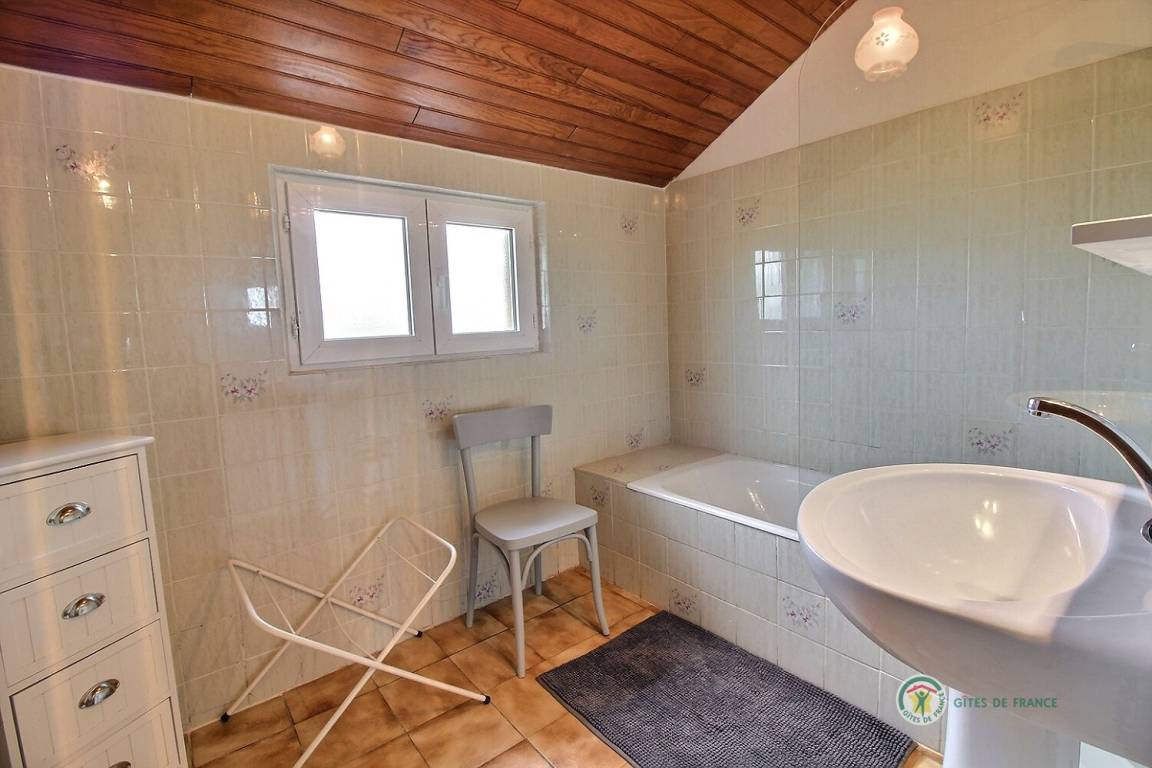 Im Obergeschoss befinden sich zwei Schlafzimmer (eines mit einem Queensize-Bett, 160 x 200 cm, und einem Waschbecken) und das andere mit zwei Einzelbetten (90 x 190 cm).