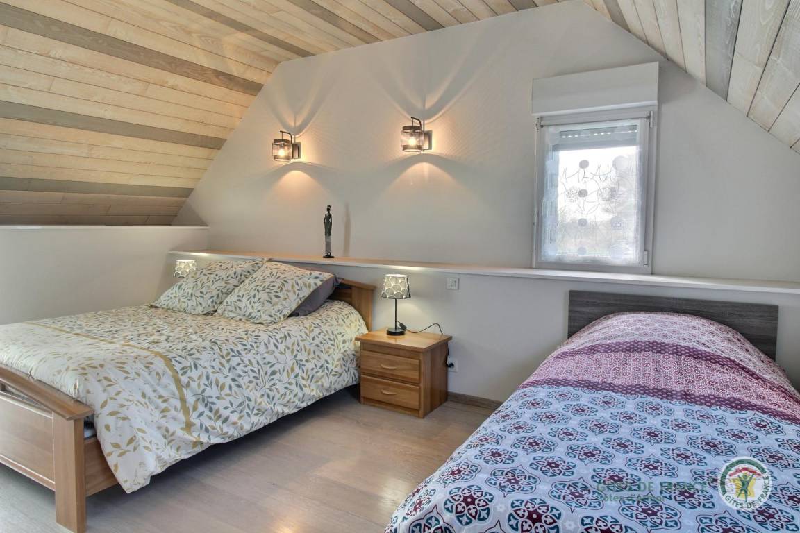 Ihre Ferienwohnung umfasst im Erdgeschoss (erreichbar über mehrere Stufen): Vorraum, schöne helle Küche, Wohnzimmer, Schlafzimmer (1 Doppelbett 140x190), Badezimmer (mit Dusche und Badewanne), WC. Obergeschoss: 3 Schlafzimmer (1 Bett 140x190 und 1 Bett 90x190), (2 Etagenbetten 90x190), (1 Bett 140x190), Badezimmer mit Dusche, WC. Zu Ihrer Verfügung: eine 10 m² große Terrasse, ein 500 m² großer privater Garten. Parken Ihrer Fahrzeuge im privaten Innenhof der Gîte (150 m²) oder unter dem privaten Carport (ein Stellplatz). Ferienhaus in der Nähe des Hauses der Eigentümer.