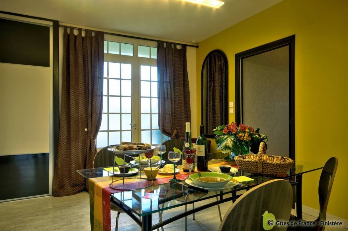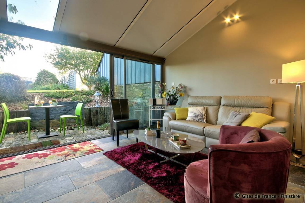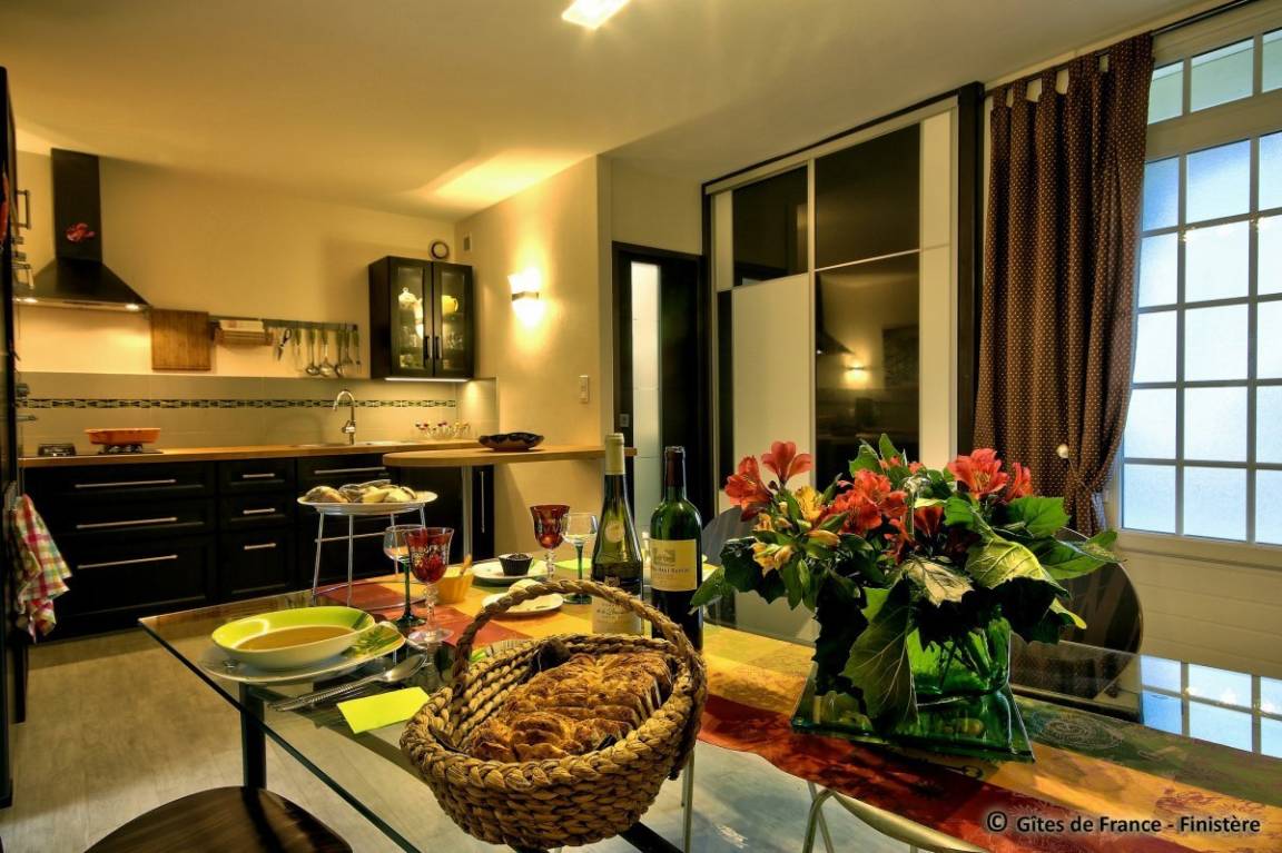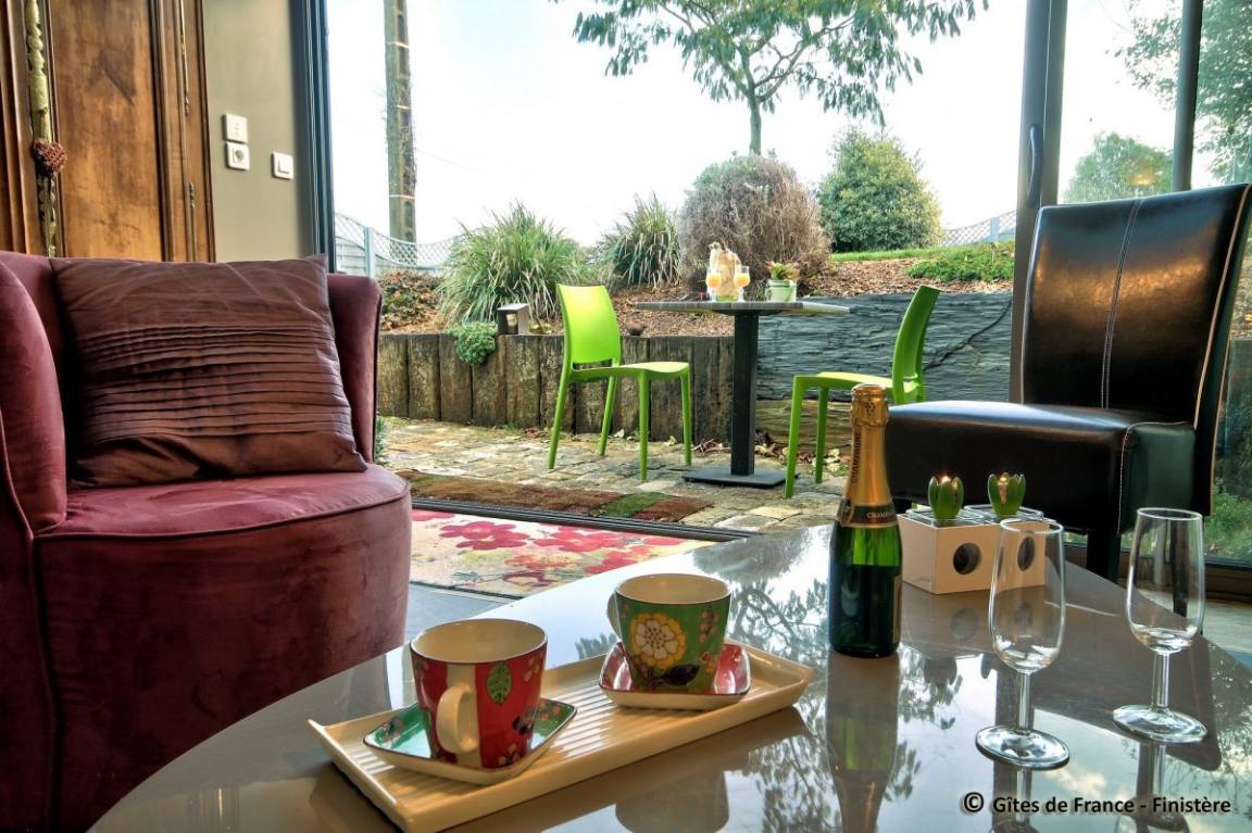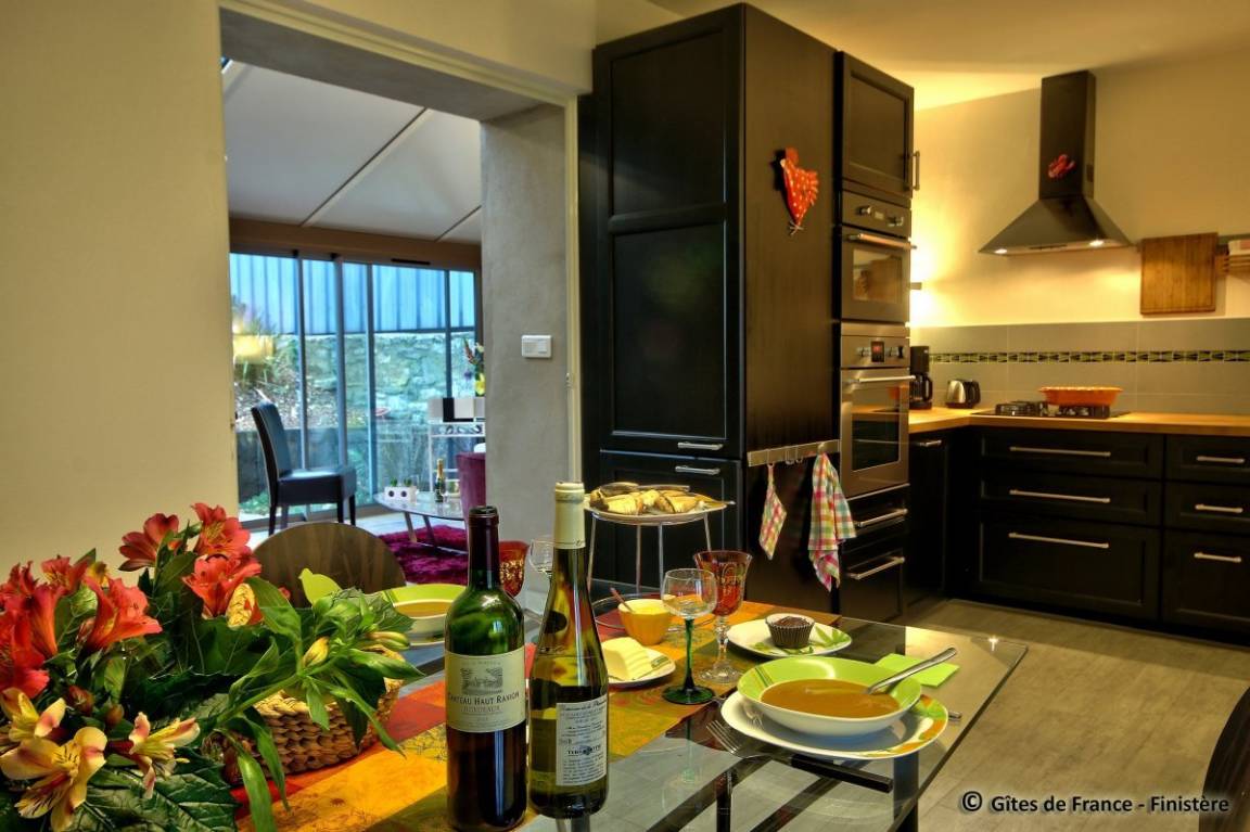 „Gite très bien conçu et parfaitement équipé pour un séjour confortable. La véranda donne sur un joli jardin paysagé et nous y avons vu les premiers arums fleuris de la saison. Nous avons visité nos amis à Douarnenez et Morgat. Quel plaisir de retrouver nos neveux et pédaler le long de l'Aulne...Un grand merci à Josy pour son accueillante gentillesse. Bien sûr, nous souhaitons revenir...“