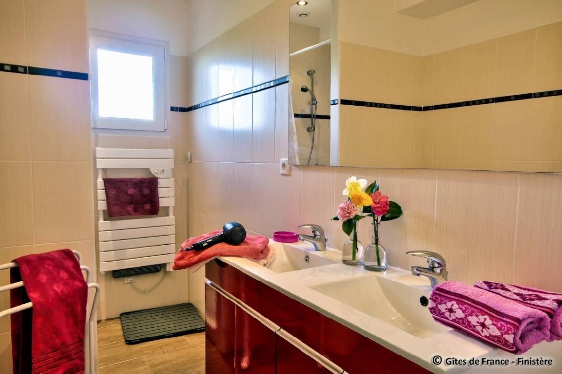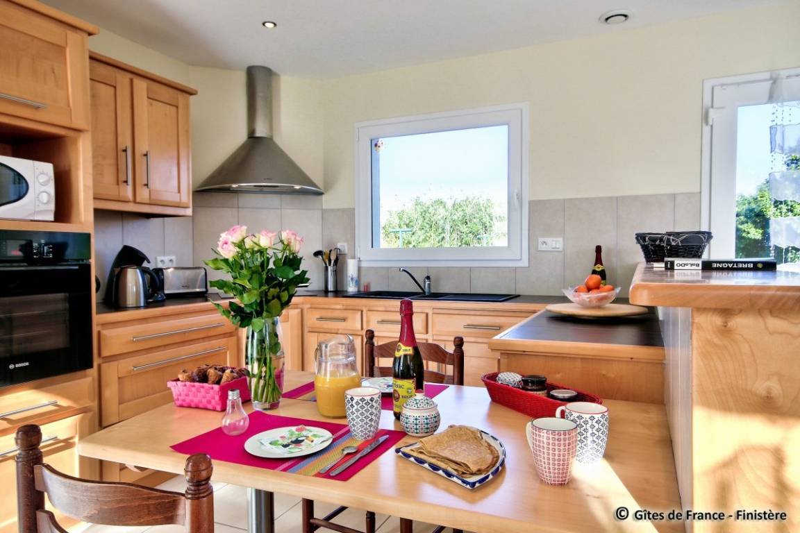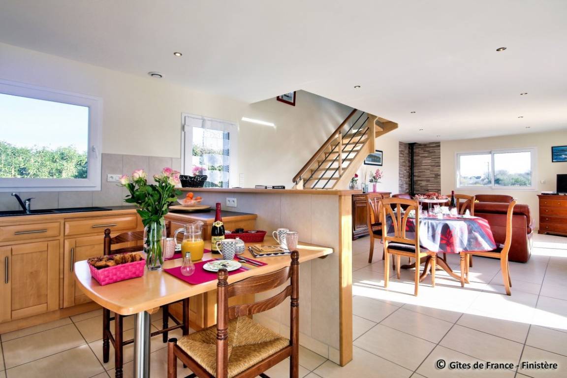 „La maison est très lumineuse et bien équipée: Cuisine aménagée, salle de bain avec douche de plein pied, lavabo 2 vasques, grande pièce de vie et chambres spacieuses, TV et wifi. Autre point fort, la proximité avec de nombreux points d’intérêt (côte, Aber Wrac’h commerces etc…), le maximum de temps passé en voiture a été de 20mn lorsque nous sommes allés à Lilia pour être au plus près du phare de l’Île Vierge et les commerces de Kerlouan sont à peine 5mn. Donc je recommande vraiment ce gite, d’autant que la propriétaire est vraiment accueillante, et arrangeante: Nous sommes partis une journée en avance parce que la météo tournait au mauvais temps (la seul journée où nous ne pouvions sortir marcher sur les 15 j) et ça s’est fait sans aucun souci.“