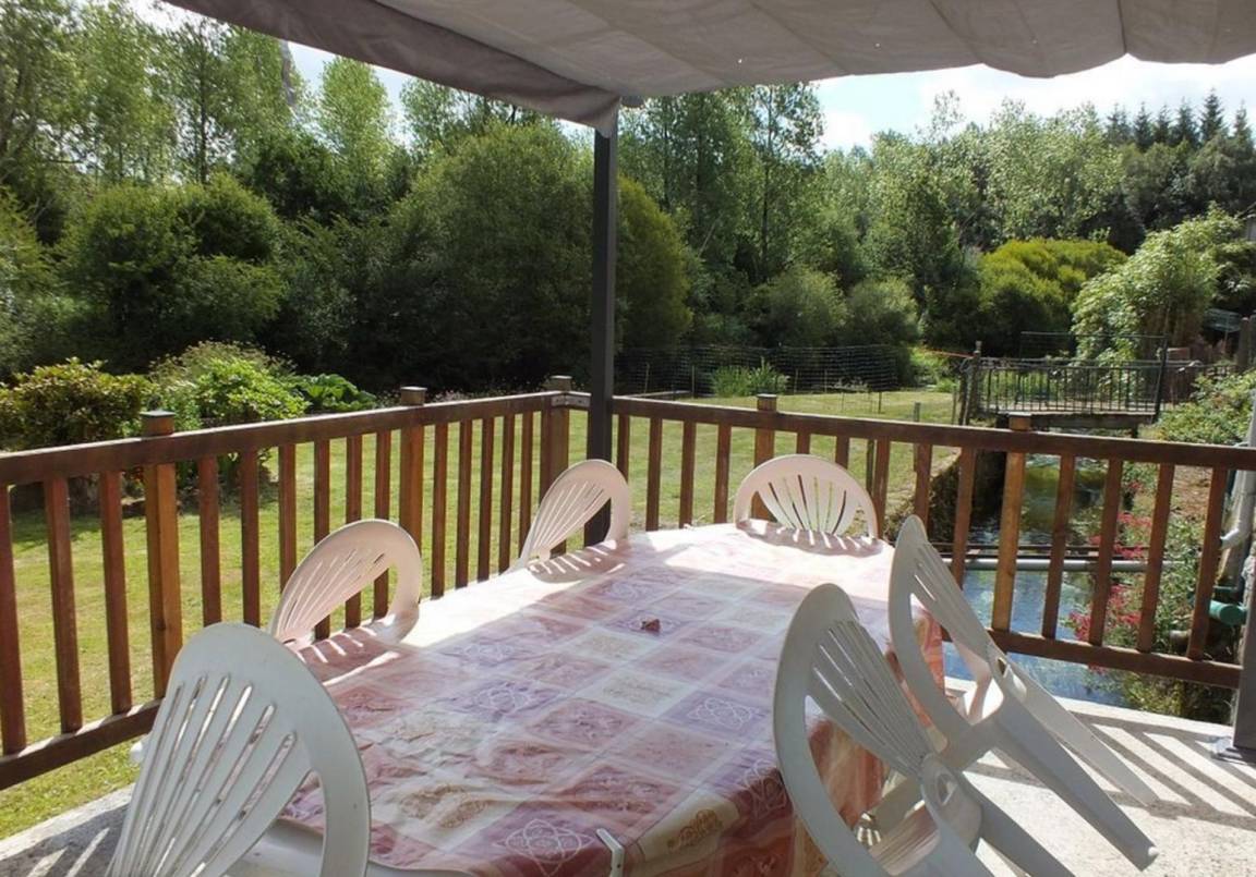 - Draußen: eine ausgestattete Holzterrasse mit Blick auf den Fluss mit Zugang zum privaten Garten, einem weiteren Raum (vor dem Haus) mit Gartenmöbeln und einem Brotbackofen. Neben dem Ferienhaus haben Sie Zugang zu einer Garage (nicht für das Auto vorgesehen) mit Tischfußball und Waschküche. Ein abschließbarer Fahrradunterstand ist ebenfalls vorhanden. Parken des Autos unter einem Schuppen 5 m von der Hütte entfernt. Das Ferienhaus grenzt an die Ferienunterkünfte der Besitzer, die Ziegen, Schafe und Hühner auf dem Landgut halten.