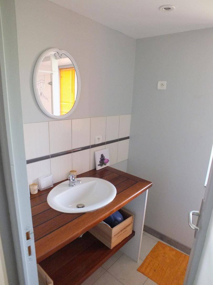 - Im Erdgeschoss: ein Wohnzimmer mit Küche, Wohnzimmer und Wohnzimmer, dann ein Schlafzimmer (1 Bett 160x200), ein Duschbad und eine separate Toilette.