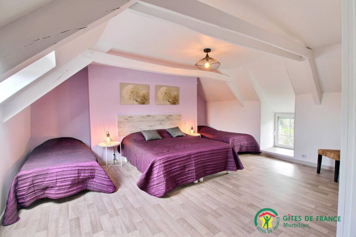 - Im Obergeschoss 2 Schlafzimmer mit eigenem Duschbad/WC: 1 Schlafzimmer für 3 Personen (1 160x200-Bett und 1 90x190-Bett), 1 Schlafzimmer für 4 Personen (1 160x200-Bett und 2 90x190-Betten).