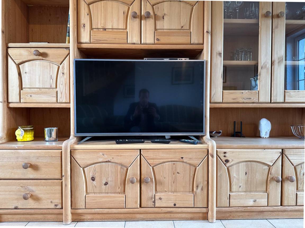 In der 1. Etage: Wohnzimmer mit TV, Sitzecke, CD-Spieler , Esszimmer mit Esstisch , Küche mit Wasserkocher, Kochherd(4 Kochplatten, elektrisch), Dunstabzugshaube, Kaffeemaschine(Filter, pads), Backofen, Mikrowelle, Geschirrspüler, Kühlschrank(+ Gefrierfach) , Badezimmer mit Dusche, Waschbecken, Toilette , Terrasse