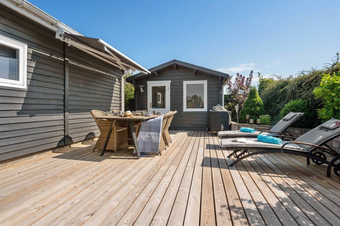 In dem Ferienhausgebiet Kerteminde Sommerby, auf einem 450 m² großen Naturgrundstück mit herrlicher Aussicht auf die Natur und auf die Stadt Kerteminde, liegt dieses besonders gepflegte Ferienhaus. Vom Wohnzimmer aus haben Sie direkten Zugang zu einer großen, in östlicher Richtung liegenden Terrasse mit Gartenmöbel von bester Qualität. Außerdem gibt es eine große ungestörte in westlicher Richtung liegende Terrasse ebenfalls mit Gartenmöbel sowie Grill. Zum Haus gehört ein Gästehaus, das mit Doppelbett, TV und Capuccino-Maschine ausgestattet ist.